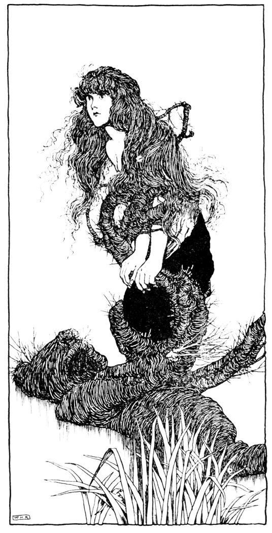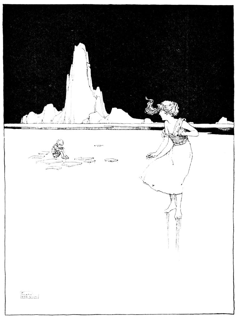 Once again that year the Viking went on a raid, though the autumn gales were rising. He led his men to the coast of Britain—‘just over the water,’ he said; and his wife remained{12} with the little girl. And truth to tell, the foster-mother soon grew fonder of the unhappy toad with the gentle eyes and deep sigh than of the beautiful child that fought and bit all about her.