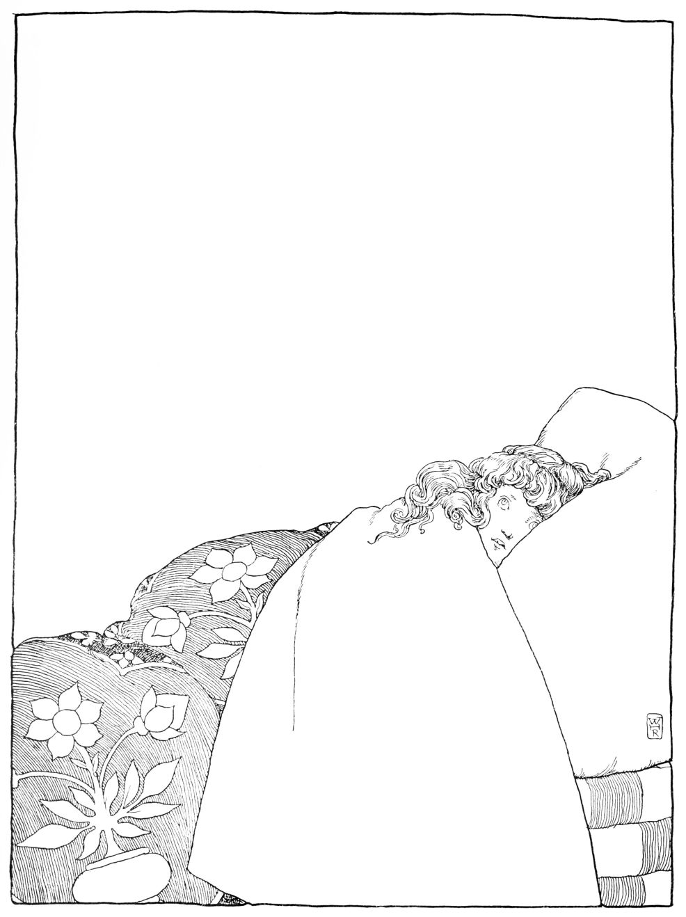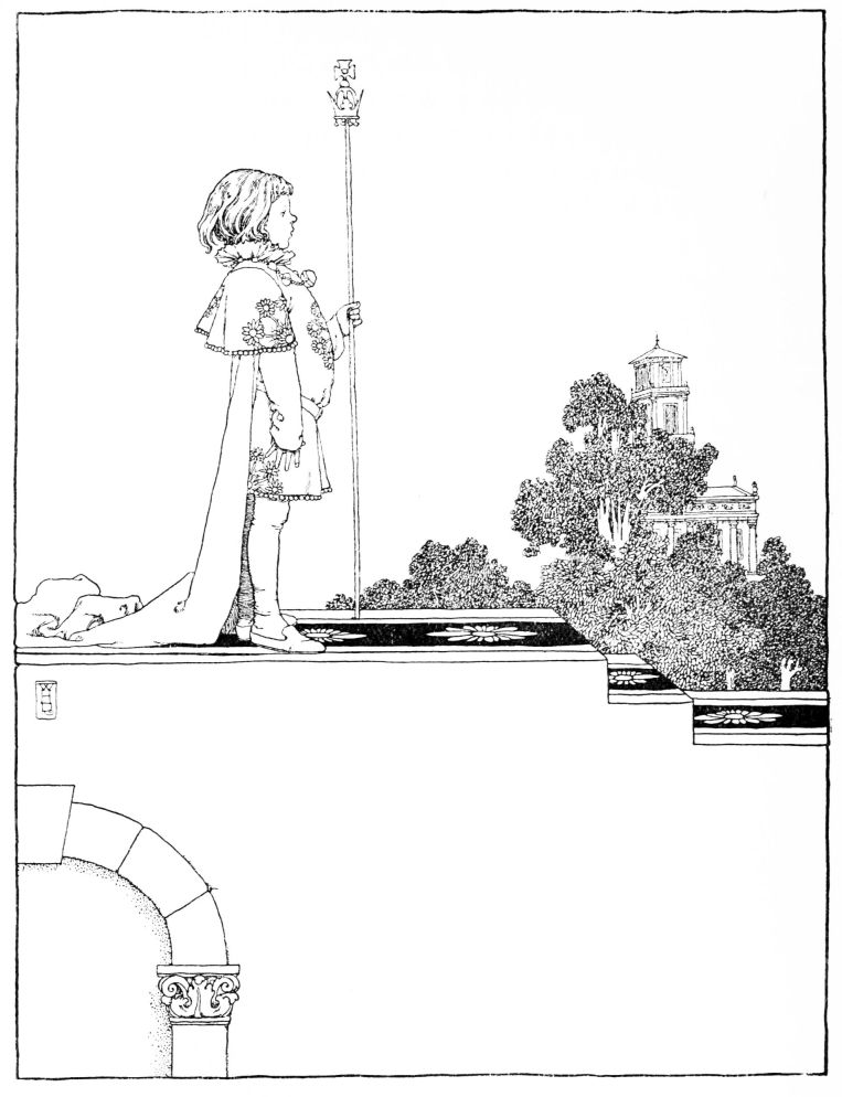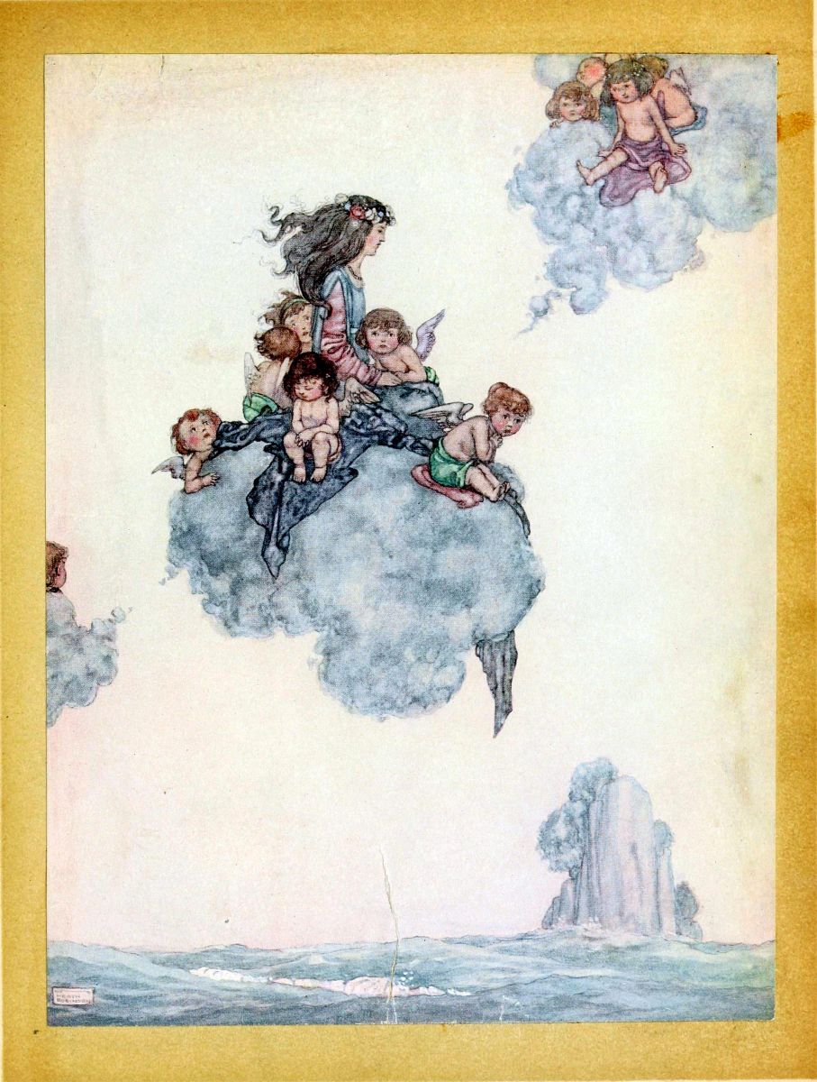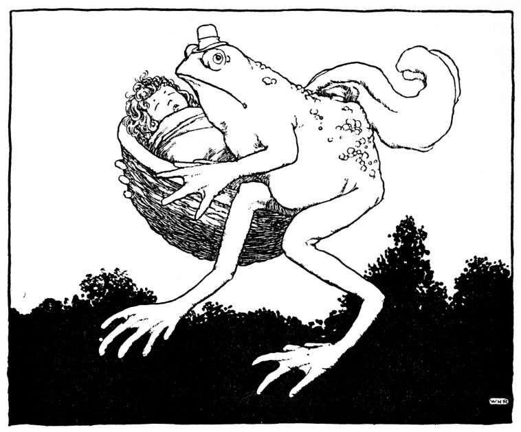 When she woke towards daybreak she was terribly frightened. The little child had vanished! She sprang up, lighted a brand, and looked everywhere around. There, just{9} at the foot of the bed where she had lain, was, not a baby, but a great ugly toad! In utter disgust at it she took a heavy stick to kill it, but the creature looked at her with such wonderfully sad eyes that she could not destroy it. Once more she gazed round; the toad uttered a faint, mournful croak. She started, and sprang from the bedside to the window, and opened it. At that moment the sun rose, and cast its rays upon the bed and upon the great toad. All at once it seemed that the creature’s wide mouth shrank, and became small and rosy; the limbs filled out into the most charming shape. It was her own beautiful babe that lay there, not the hideous reptile!