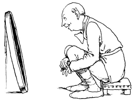So with great difficulty they crawled down the chimney, crept through the flues and the tunnel, and at length found themselves once more in the dark stove; but they still lurked behind the door, listening, before they would venture to return{268} into the room. Everything was quite still; they peeped out: alas! on the ground lay the old Chinese mandarin. In attempting to follow the runaways, he had fallen down off the table and had broken into three pieces; his head lay shaking in a corner; ‘the crooked-legged Field-marshal-Major-General-Corporal-Sergeant’ stood where he had always stood, thinking over what had happened.