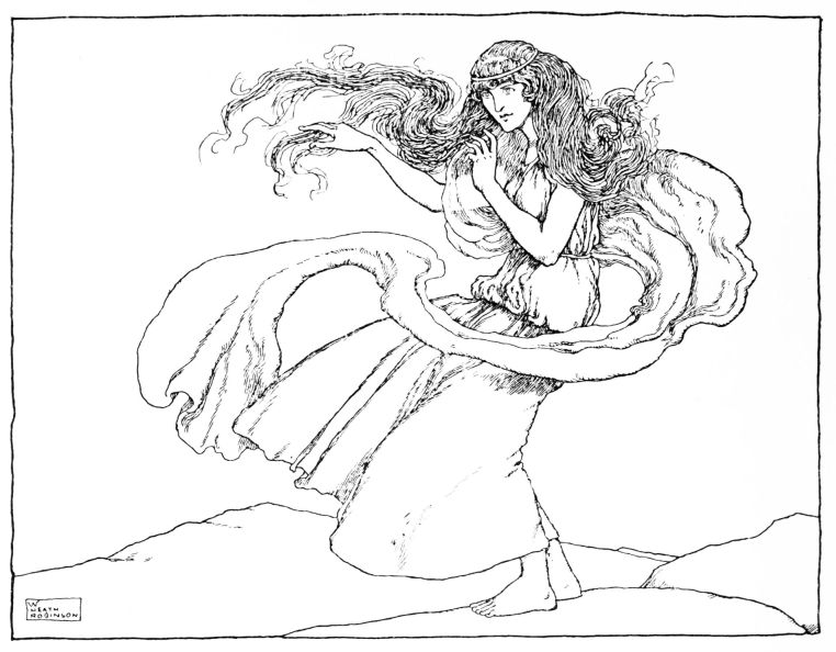 But the Viking did not believe what she said; he was, like the others, infatuated with her beauty; and he did not know how disposition and appearance changed in little Helga. She would sit without a saddle, as if she had grown to the horse, when it galloped at full speed; and she would not leap off, even when it fought with other vicious horses. In all her clothes she would often cast herself from the bank into the strong current of the fjord and swim to meet the Viking when his boat was steering towards the land. She cut off the longest lock from her beautiful long hair, and made it into a string for her bow. ‘Self-made is well made!’ she said.