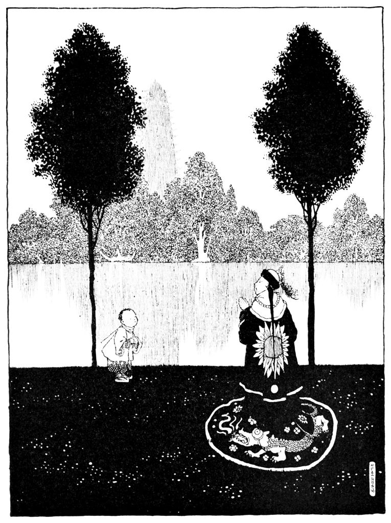 And the chimney-sweeper talked very sensibly to her, reminding her of the old Chinese mandarin and ‘the crooked-legged Field-marshal-Major-General-Corporal-Sergeant,’ but she wept so bitterly, and kissed her little chimney-sweep so fondly, that at last he could not but yield to her request, unreasonable as it was.
