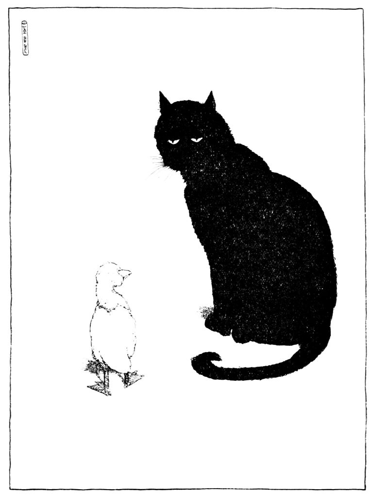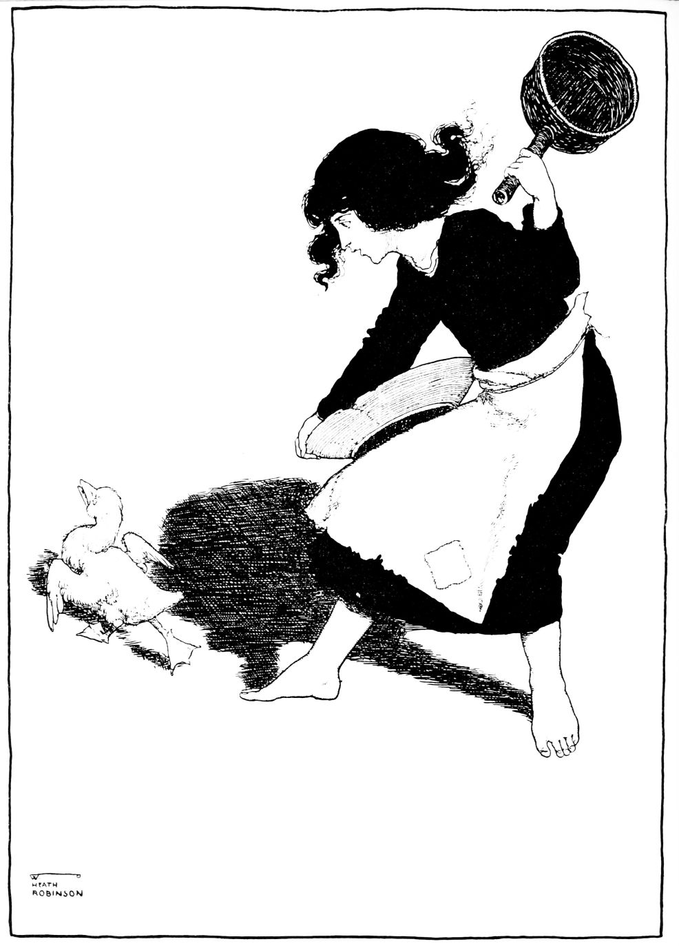 So they came into the duck-yard. There was a horrid noise; two families were quarrelling about the remains of an eel, which in the end was secured by the cat.