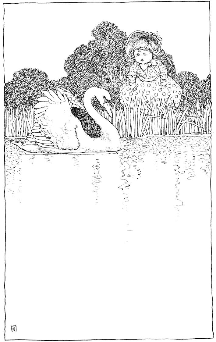 ‘I will fly to them, those kingly birds!’ said he. ‘They will kill me, because I, ugly as I am, have presumed to approach them; but it matters not, better to be killed by them than to be bitten by the ducks, pecked by the hens, kicked by the girl who feeds the poultry, and to have so much to suffer during the winter!’ He flew into the water, and swam towards the beautiful creatures—they saw him and shot forward to meet him. ‘Only kill me,’ said the poor animal, and he bowed his head low, expecting death,—but what did he see in the water?—he saw beneath him his own form, no longer that of a plump, ugly, grey bird—it was that of a swan.