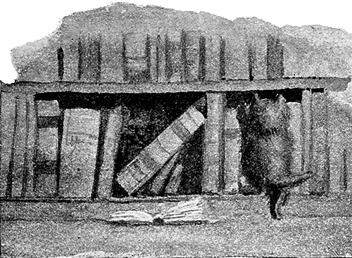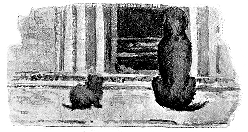 But in the middle of the day I suddenly heard from my bedroom an extremely loud voice saying “wwaughwow,” and looking down saw Pasht standing on the window-sill of the schoolroom. I don’t know whether she said it or not, for as soon as she saw me she looked up and took to the more ordinary and ladylike expression of a general desire to go out in the sunshine. Several times in the day I heard it again, but as soon as I looked35 round, Pasht turned an innocent face to me and said “miaow.”