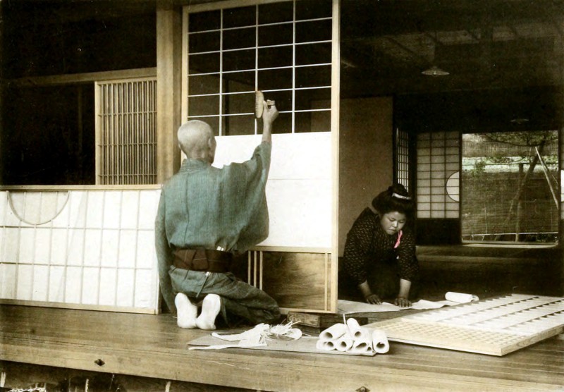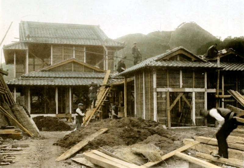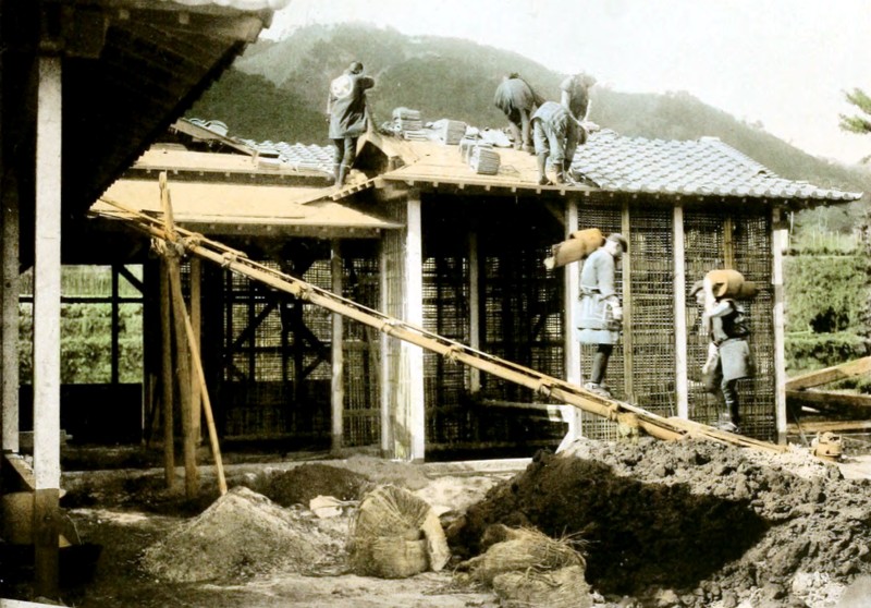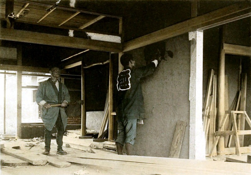 The house is done but the whole household are kept busy for sometime, pasting papers over the “Shoji” (doors of rooms), and many other little jobs are waiting to be finished before the family may comfortably enjoy the new house.
