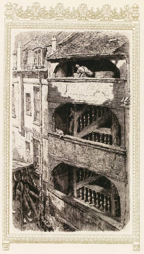 Les étonnantes fenestrières qui habitèrent ces clapiers sont désormais éparses dans toutes les rues avoisinantes, ainsi que les juifs qui s’y livrent, eux aussi, au commerce des déchets. Ils pullulaient autrefois dans cette paroisse, dans cette rue des Juifs où demeura au seizième siècle Mme Acarie et ils avaient même, rue de la Tâcherie, une synagogue.