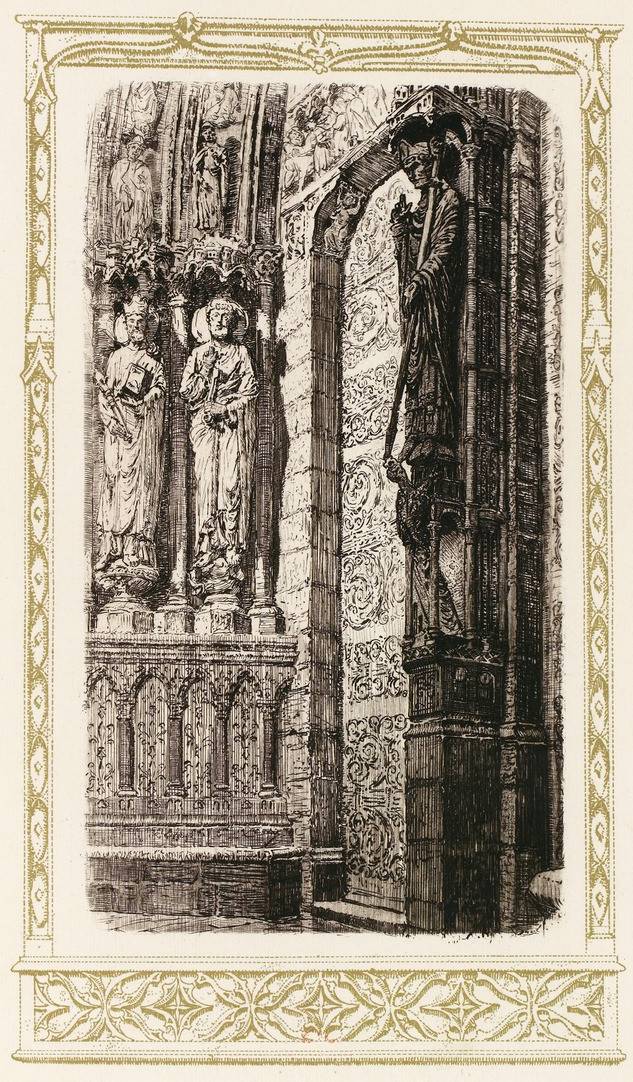 La symbolique, qui est la science d’employer une figure ou une image comme signe d’une autre chose, a été la grande idée du moyen âge, et, sans elle, rien de ces époques lointaines ne s’explique. Sachant très bien qu’ici-bas tout est figuré, que les êtres et que les objets visibles sont, suivant l’expression de Saint Denys l’Aréopagite, les images lumineuses des invisibles, l’art du moyen âge s’assigna le but d’exprimer des sentiments et des pensées avec les formes matérielles, variées, de la vitre et de la pierre et il créa un alphabet à son usage. Une statue, une peinture, purent être un mot et des groupes, des alinéas et des phrases ; la difficulté est de les lire, mais le grimoire se déchiffre. Des livres tels que le « Miroir du Monde » de Vincent de Beauvais, le « Speculum Ecclesiæ » d’Honorius d’Autun, si bien mis en valeur par M. Male, le Spicilège de Solesmes, les apocryphes, la Légende dorée, nous donnent la clef des énigmes.