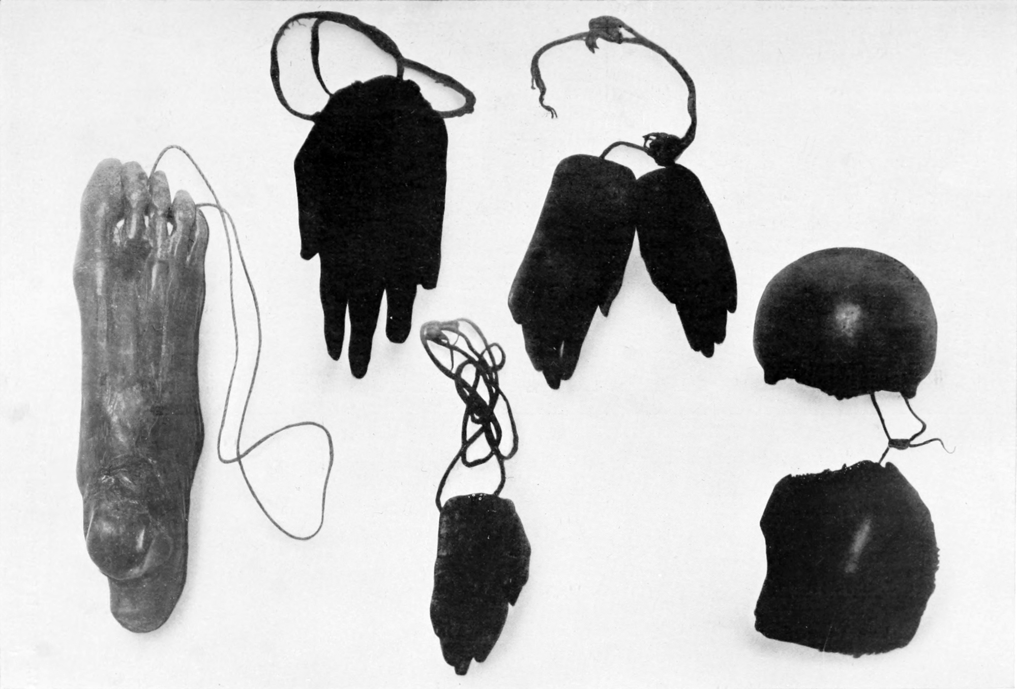 Anders verhält es sich mit einem für unseren Geschmack unverständlichen Schönheitszeichen mit den verkrüppelten Füßen der Chinesinnen (Abb. 474). Ein möglichst kleiner Fuß gilt für berückend schön; selbst männliche Stutzer streben danach, diese Zierde sich dadurch anzueignen, daß sie nachts die Füße hochhalten und am Tage mittels Draht die Zehen in die Höhe drängen, um auf diese Weise einen kleinen Fuß vorzutäuschen. Die Frau wird daher nur nach der Kleinheit ihres Fußes gewertet, nicht nach ihren sonstigen Schönheitsattributen, und ein kleiner Fuß wiegt unter Umständen eine große Mitgift auf. Einem Mädchen aus ärmeren Ständen, das über recht kleine Füße verfügt, wird dadurch die Möglichkeit gegeben, in eine höhere Gesellschaftsklasse einzutreten; auf der anderen Seite auch wieder ist über ein Mädchen, das keinen verkrüppelten Fuß besitzt, von vornherein das Urteil gesprochen; es ist für immer zur Ehelosigkeit verdammt. Für den Chinesen bleibt der kleine Fuß der entzückendste und pikanteste Körperteil seiner besseren Hälfte; der genießt ganz besonders ihre Gunst, dessen Blicken sie ihren Fuß einmal enthüllen sollte, was nur äußerst selten geschieht. Denn wie Chinesen versicherten, ruft der Anblick eines verkrüppelten Fußes bei ihnen einen hochgradigen Sinneskitzel hervor. Das Entblößen eines Frauenfußes gilt in hohem Grade für unschicklich, ja selbst für unsittlich; das geht sogar so weit, daß Europäer, die den nackten Fuß einer Prostituierten sehen wollten, bei ihr auf Widerstand stießen. Darstellungen von nackten Frauenfüßen finden sich auch nur in der pornographischen Literatur, und nach den Füßen einer Chinesin sehen, ist gleichbedeutend mit un[S. 410]sittliche Gedanken hegen. Der Ursprung des Fußverkrüppelns ist in Dunkel gehüllt; die Legende berichtet, daß eine kaiserliche Nebenfrau im sechsten Jahrhundert nach Christi Klumpfüße gehabt haben soll, die ihr hoher Herr und Gebieter schön fand, und daß daraufhin sich alle Hofdamen veranlaßt sahen, ihren Füßen durch Bandagieren dieselbe Form zu geben. Auf jeden Fall hat sich diese Gewohnheit schon seit langen Zeiten im himmlischen Reiche Bürgerrecht erworben, und alle namhaften Dichter haben die „Goldenen Lilien“ unzählige Male besungen. Allerdings ist sie nicht überall im Lande und nicht gleichmäßig verbreitet; im Norden des Reiches begegnet man den verkrüppelten Füßen häufiger als im Süden, bei den wohlhabenderen Volksschichten öfter als bei den niedrigeren, und in der Stadt ebenfalls häufiger als auf dem Lande. Merkwürdigerweise war am kaiserlichen Hofe die Verunstaltung des Frauenfußes nach dem Sturze der Mingdynastie und der Herrschaft der Mandschu, die an ihrer Stelle ans Staatsruder gelangten, verpönt. Trotz wiederholter kaiserlicher Verbote hat sich diese schreckliche Unsitte aber beim Volke bisher nicht abschaffen lassen. — Die Verkrüppelung wird durch stetigen Druck und Zug einer straffen, aber nicht direkt schnürenden Binde im Verlaufe eines Jahrzehnts erzeugt. Für gewöhnlich beginnt man damit bei den Mädchen im Alter von vier bis acht Jahren, unter Umständen aber auch schon im zartesten Kindesalter. In einzelnen Gegenden, wo die Eltern ihr Mädchen zur Feldarbeit ausnutzen wollen, warten sie bis zu zwölf, dreizehn und auch vierzehn Jahren; sie begnügen sich dann damit, alle Zehen unter den Fuß zu binden, so daß sie mit ihrer Rückenfläche auf dem Boden aufliegen, und ihn auf diese Weise kürzer machen. Verbreiteter ist dagegen ein anderes Verfahren, das weit elegantere Füße schafft; hierbei wird ein hohler Metallzylinder unter die Fußwölbung geschoben und über ihn die ganze vordere Fußpartie nach unten gebogen. Diese Manipulation ist ziemlich schmerzhaft; ein chinesisches Sprichwort besagt, daß jedes Paar gewickelter Füße ein Tränenbad koste, und doch wird sie von den Kindern meist gut ertragen, denn man sieht die Kleinen dessenungeachtet tagaus, tagein auf der Straße sich tummeln. Die[S. 411] Binden werden jeden Morgen, nachdem der Fuß gebadet und massiert worden ist, und dies geschieht ein ganzes Jahrzehnt lang, ungefähr bis zur Pubertät, von neuem umgelegt. Meistens bandagieren sich die erwachsenen Chinesinnen ihren Fuß noch weiter, damit er seine Formen behalte. Das Ergebnis dieser Verunstaltung ist grauenerregend. Zwar wird zumeist, um den Fuß besonders klein erscheinen zu lassen, durch den Schuhmacher noch etwas nachgeholfen, insofern er den Schuh nach hinten möglichst weit und möglichst hoch herausarbeitet, wodurch der vor dem Spann liegende Abschnitt auffällig verkürzt erscheint, indessen sollen Füße von nur sieben bis neun Zentimeter Länge keineswegs eine Seltenheit sein. In solchen Fällen, wo die Mutter ihr Meisterstück vollbracht hat, steht das Fersenbein steil aufgerichtet, seine Längsachse ist zur Vertikalen geworden; das Fersenbein hat eine Drehung um neunzig Grad erfahren (Abb. 475 und 476). — Die Muskulatur des Unterschenkels wird dadurch natürlich mehr oder minder zum Schwinden gebracht, das Gehen somit den Chinesinnen ungemein erschwert, jedoch nicht in dem Maße wie man glauben könnte. Sie können nach Aussagen von Augenzeugen nicht nur gehen, sondern auch tanzen und selbst auf einem Pferd oder einem Seil akrobatische Kunststücke treiben. Allerdings wird so etwas bei hochgradiger Verunstaltung, wie sie die Modedame aufweist, kaum möglich sein; diese muß sich, um sich fortbewegen zu können, eines Stockes oder der Unterstützung ihrer Dienerin bedienen oder sich tragen lassen. Auf der Straße läßt sich die Chinesin, auch die des mittleren Standes, tragen oder fahren.