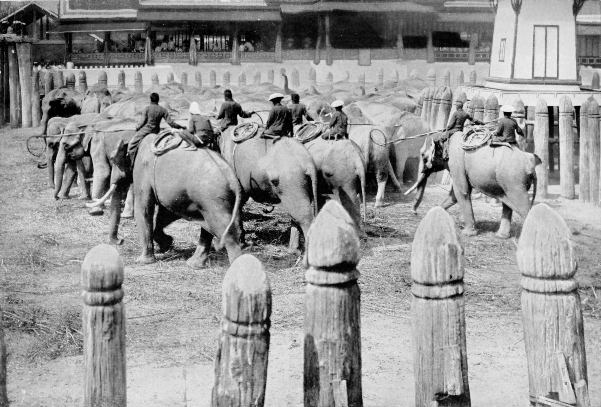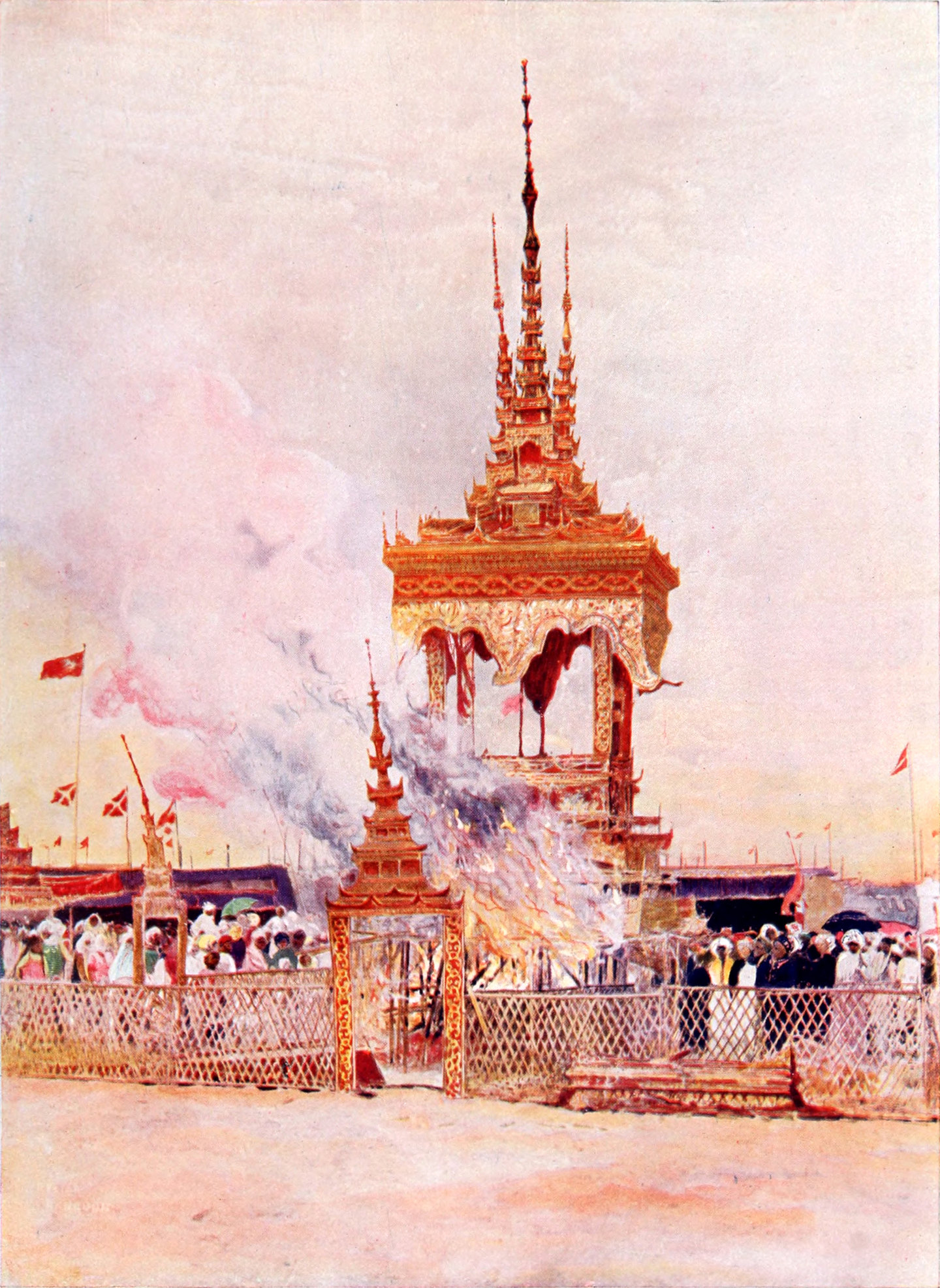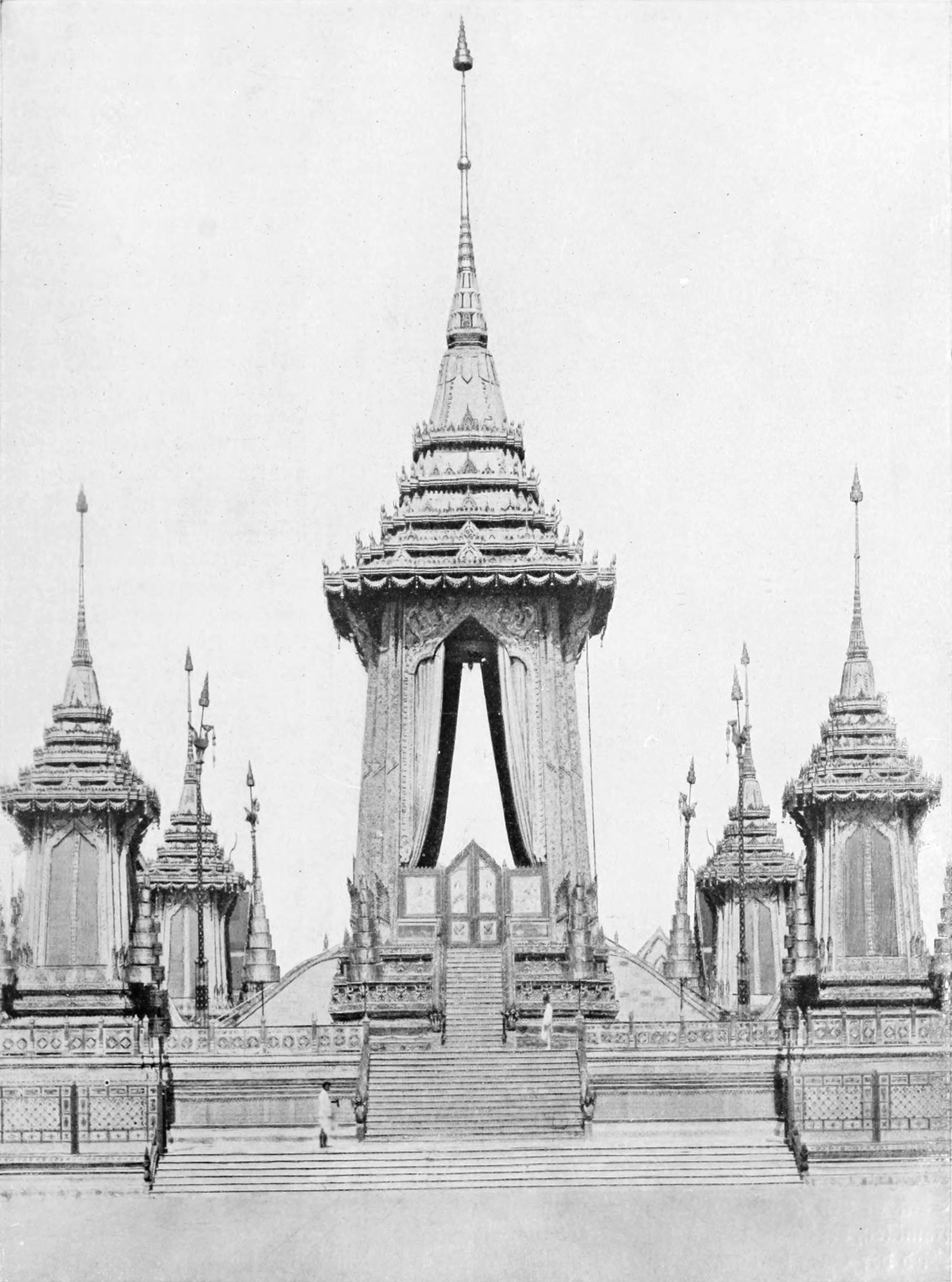 Mandarine, bedeutende Personen, sowie Leute, die durch Mildtätigkeit und Güte diese Ehre verdient haben, werden auf öffentliche Kosten in kostbaren Mausoleen, die aus Granit oder Nephrit gebaut, mit gebrannter Emaille geschmückt sind und ein Wohngebäude mit Saal für Totenzeremonien enthalten, beigesetzt. Weltberühmt sind die Gräber der Kaiser aus der Mingdynastie, im besonderen das Grabmal des Herrschers Yung-Lo bei Peking. Eine kilometerlange Allee von seltsam geformten steinernen Riesentieren (Abb. 499 und 500), Kriegern und Ministern, von denen ein jedes Bildnis aus einem einzigen Felsblock gehauen ist, führt zu einem großen Hügel, auf dem sich das Grab dieses berühmten Kaisers inmitten alter Eichen, Zedern und Sykomoren, ein Tempel auf einer weißen, von einer skulpturenreichen Balustrade umgebenen Marmorterrasse erhebt, und dessen gelbes Dach auf sechzig, drei Meter im Umfang messenden Holzsäulen ruhend die goldene Ahnentafel beschattet. Ursprünglich scheint man im Altertum bei chinesischen Begräbnissen auch Menschenopfer dargebracht zu haben; bis vor wenigen Jahrhunderten war dies nachweislich noch bei kaiserlichen Begräbnissen der Fall.