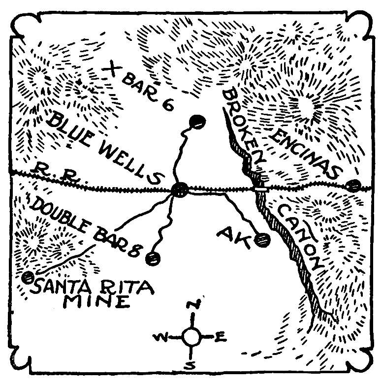 When Hashknife turned back to the Double Bar 8 it was because of a single theory. He was fairly positive that Marion had not been kidnaped by those men because they wanted her; but that they had had reasons of more importance to them than the mere capture of a young lady. Hashknife wasn’t sure just what this was, but he had a suspicion—at least, enough suspicion to send him back to the ranch, instead of heading a posse over to the breaks of Broken Cañon.