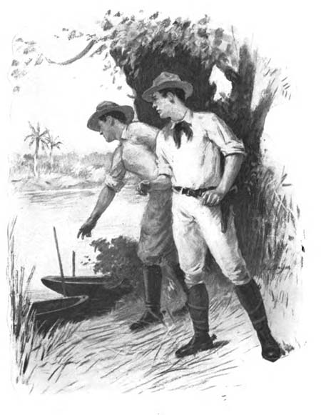 “I am sorry, Syd, but I must leave you to look out for the ship,” Phil said as he leaped[372] for the side of the native boat and grasped Colonel Martinez’s hands. “Keep us in sight and see if you can work her through the reefs.”