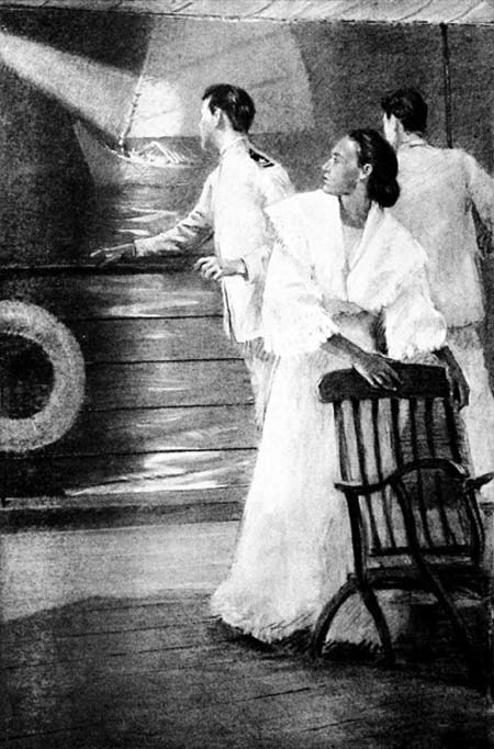 “This is my small brother,” she explained[17] as a slight lad of about seven came toward them from behind a small boat, resting on the skids of the upper deck. “He is my only companion,” she added half shyly.