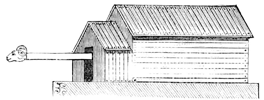 Acrostolium, Gr. and R. (ἀκροστόλιον, extremity of beak of a ship). An ornament employed by the ancients to decorate the upper extremity of the prows of ships. This ornament often figured among trophies, since it was the custom for the victor in a naval combat to take the acrostolia from the captured ships. It is frequently to be met with on the bas-reliefs of triumphal monuments. Fig. 8 shows an acrostolium taken from a bas-relief in the Museum of the Capitol. The object seen projecting from the acrostolium is a sounding lead.