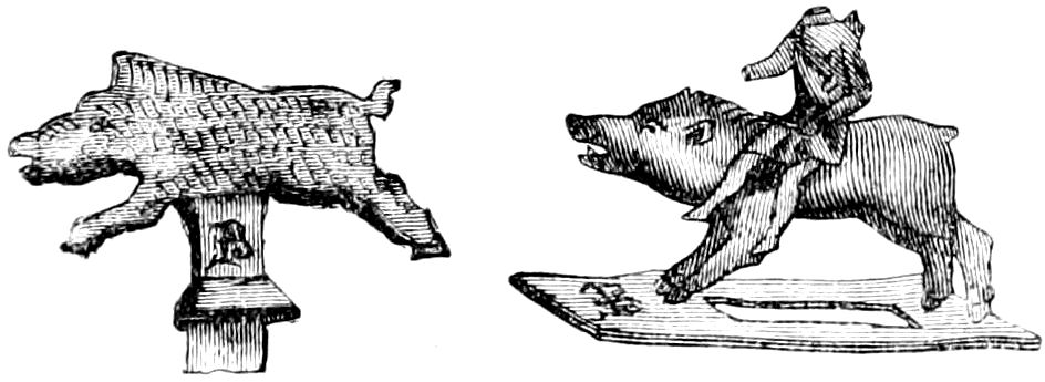 The acetabulum was also a goblet used by jugglers among the Greeks and Romans to make nutmegs disappear. By the latter these jugglers were called præstigiatores, by the former ψηφοκλέπται or ψηφοπαίκται. Lastly, we find in Pliny the Elder that acetabulum was the name given to a dry measure of capacity, equal to the quarter of a hemina or the half of the quartarius, and equivalent to .1238 of a pint. [The Greek Oxybaphon.]
