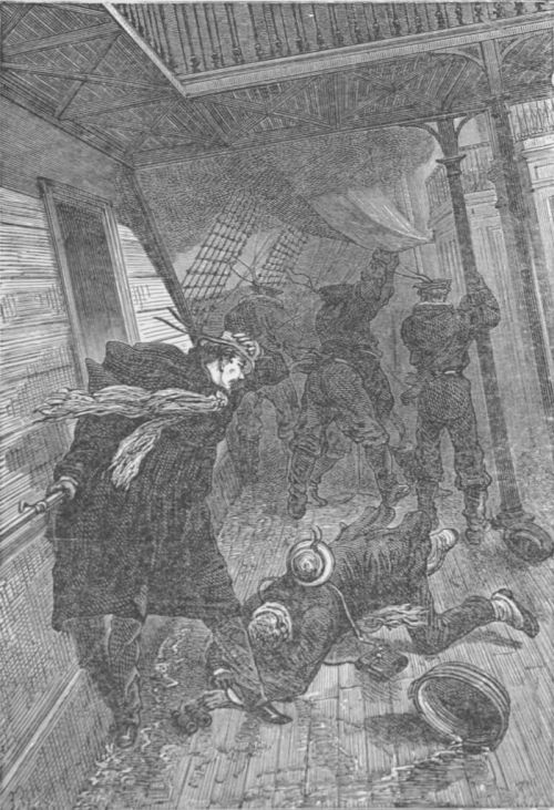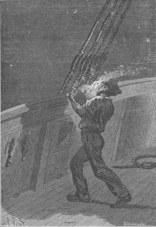 But one brave man alone among them ran up to the formidable weapon of destruction. It was Crockston; he took the shell in his strong arms, whilst showers of sparks were falling from it; then, with a superhuman effort, he threw it overboard.