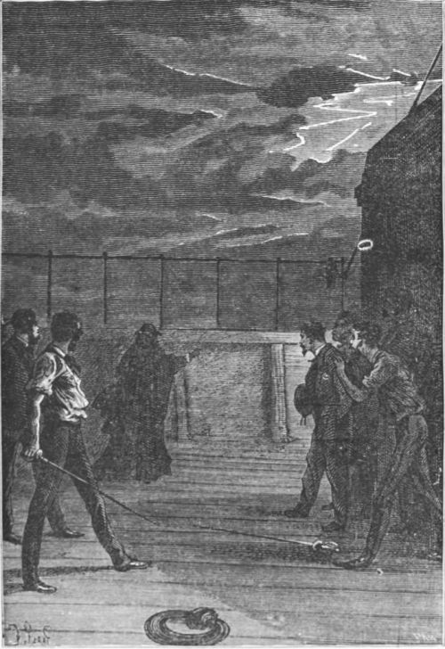 The “Dolphin” was speeding rapidly towards the open sea. There were only three miles more before she would be in the waters of the Atlantic; if the pass was free at its entrance, she was saved. James Playfair was wonderfully well acquainted with all the secrets of Charleston Bay, and he guided his ship through the darkness with an unerring hand. He was beginning to think his daring 280enterprise successful, when a sailor on the forecastle cried,—
