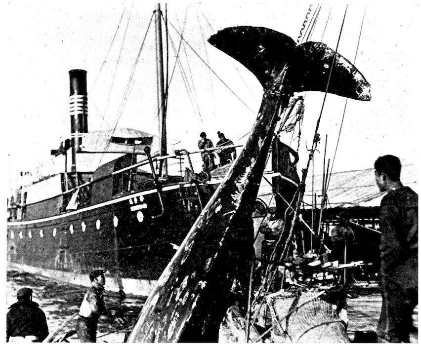 In Japan it will be a national catastrophe when whaling ceases, because the diet of the ordinary native would consist of little besides rice, fish, and vegetables were it not for the thousands of tons of whale meat which are distributed fresh or canned to almost the entire Empire, and which furnish a healthful and palatable food at a low cost.