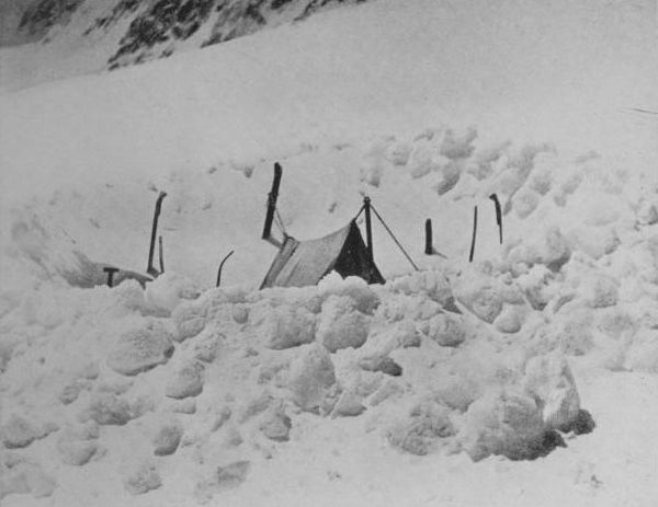 | Another Attack—Digging out the Frozen Tent—Camp on the Plateau—Finding a New Route—Blocked by a Wall of Rock—Some Acrobatic Performances—Defeat once more—Finding the Lost Swags—Return to the Hut—A Fourth Attempt—Back to the Plateau—Climbing by Lantern-Light—Loss of an Ice-Axe—The Final Ice-Cap gained—Retreat once more—A Terrible Storm |