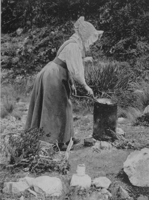 | Thunderstorm at the Hut—The Sun-bonnet Brigade—Our Habitation—The Housing Problem—Cooking al fresco—Cards and a Late Dinner—Memories of Boiled Mutton |