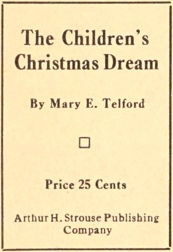 Note: When the curtain rises Santa Claus is busy arranging toys in shop window, lighting candles and doing such other stage work as will enliven the scene.