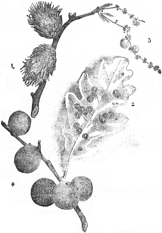 Man wird leicht imstande sein, irgend einen solchen im Walde zu finden, eine Eiche, eine Buche oder einen Haselnußstrauch, die aus einer in den Boden getretenen Nuß, Buchecker oder Eichel aufgewachsen sind. Ich werde eine Eiche wählen, weil ich eine dicht vor meiner Tür habe und euch ein Bild davon geben kann. Wenn ihr eine Eichel nehmt, sie in den Hals einer Flasche steckt mit der Spitze nach oben und vorher die Flasche mit Wasser füllt, so könnt ihr eine kleine Eiche aufziehen und sehen, ob sie der meinigen ähnlich ist.