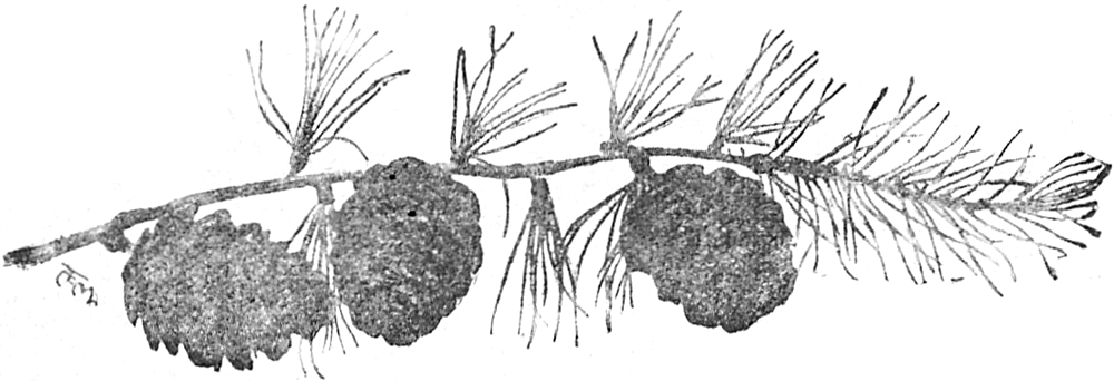 Kiefern, Fichten und Lärchen wachsen fast in allen Gegenden Deutschlands. Es sind interessante und nützliche[S. 39] Bäume. Sie alle bilden ihren Samen in holzartigen Zapfen, und ihre Blätter sind sehr schmal oder nadelförmig, ganz ungleich den Blättern der meisten anderen Bäume.