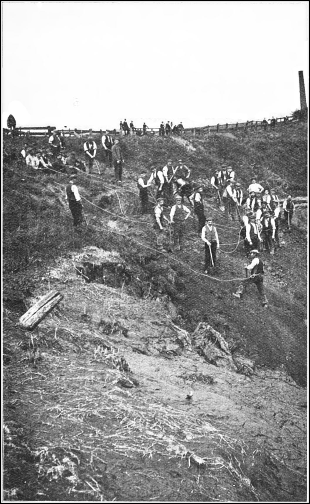 From the time of the “Great Subsidence,” as this115 event is described, the sinking has been continuous throughout the locality. In some places meadows have been converted into swamps, roads have sunk fully 30 ft. below their original level, and small brooks have become lakes of many acres in extent; sunken and distorted fences, roads, and streams are common objects of the country-side, the tenure of pastoral lands is precarious, and property is valueless for building purposes; and nothing but its inexhaustible reserves of brine saves the district from abandonment as a place accursed.