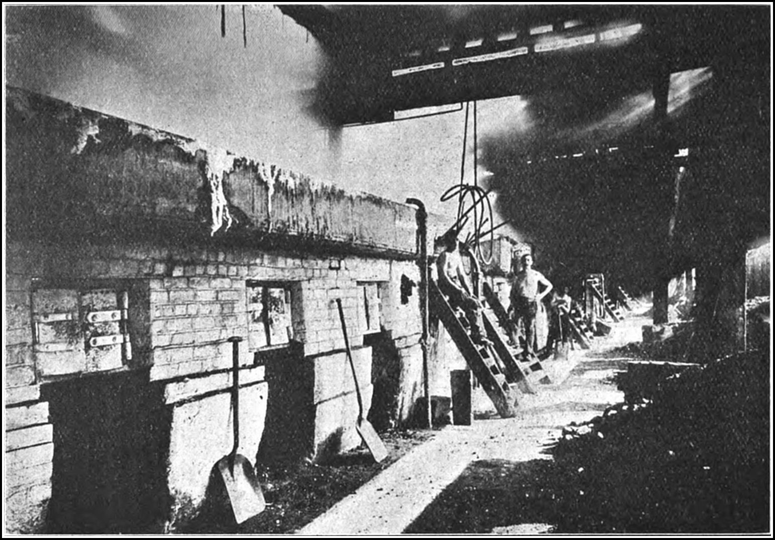 From the time of the introduction of the open-pan system in Cheshire, until the beginning of the present century it was found impossible, owing to the nature of the furnaces employed in the process, to maintain a sufficiently high and uniform temperature to produce salt which, without grinding, is marketed as finest table salt, or to make more than 2 tons of salt from the consumption of 1 ton of coal. Experiments for the purpose of economizing fuel appeared destined to perpetual failure, and the hand-stoking of the furnaces entailed so many variations of temperature that the production of salt crystals of uniform size was impossible. Then, within the same decade, two processes were invented which, between them, solved the problems that135 had hitherto eluded all the efforts of the scientist, the engineer, and the practical salt-man.