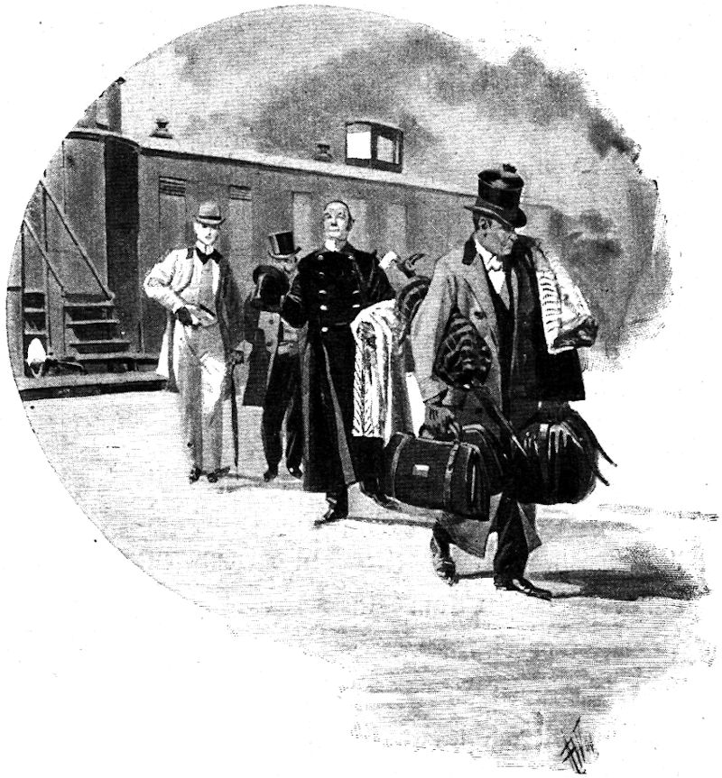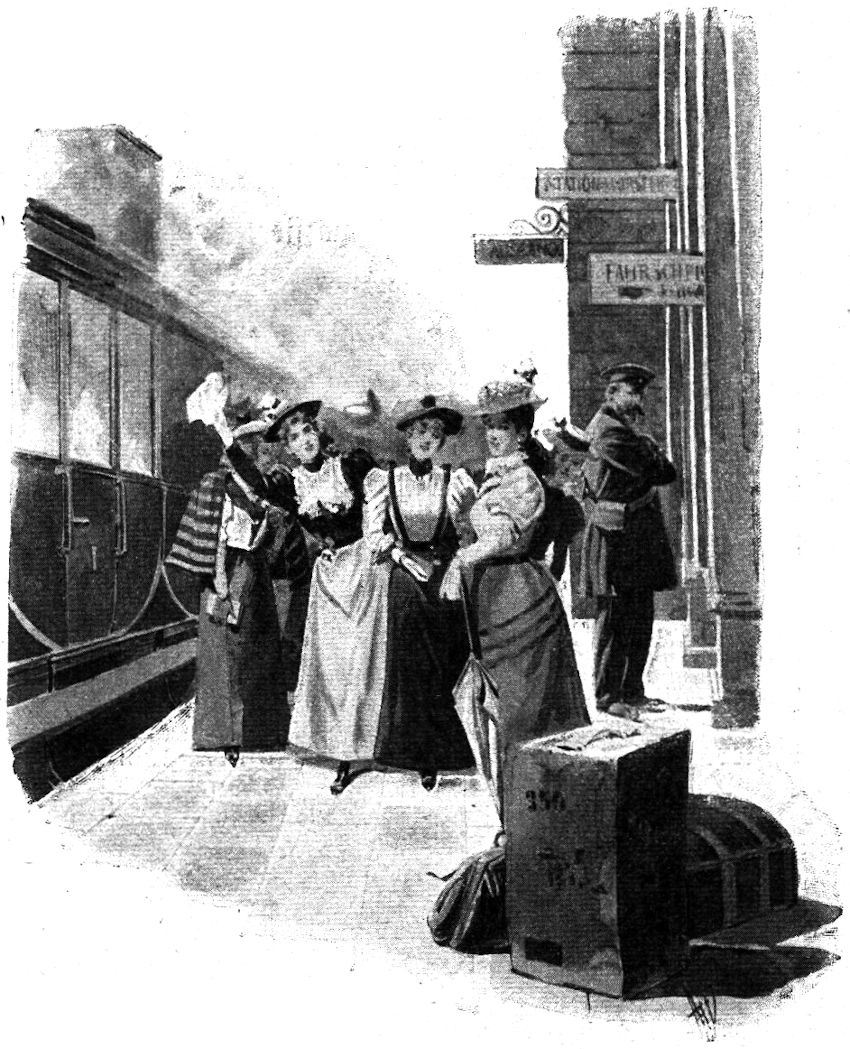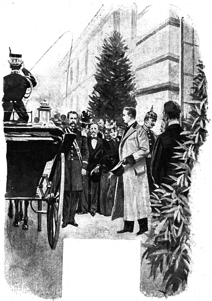 Als er pfauchend mit seiner riesigen Lokomotive in die offene Halle fuhr, öffneten die Lakaien die schweren Eichenthüren des Fürstenzimmers, und der Fürst trat in Generalsuniform, auf den Arm seines Neffen gestützt, langsam auf den Perron. Zweimal umarmte er den Prinzen, dann lehnte er sich, als der Prinz in ein Coupé erster Klasse gestiegen war, schwer auf den sofort dargebotenen Arm eines Kammerherrn.