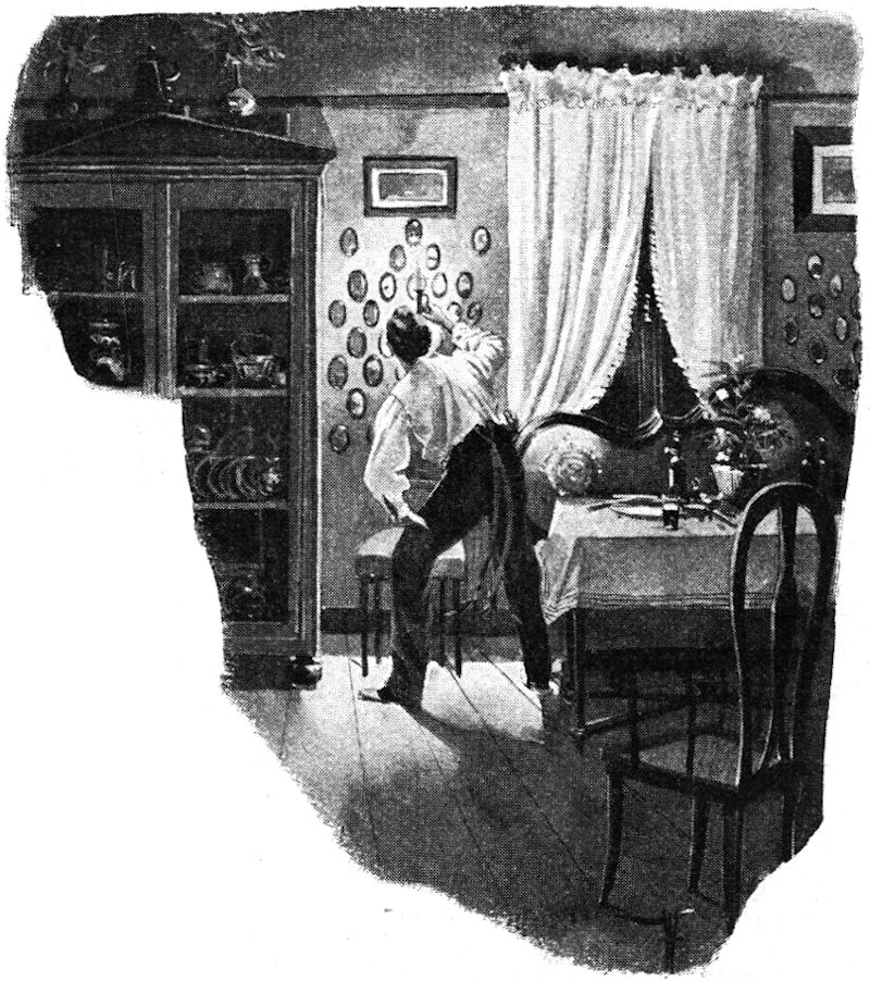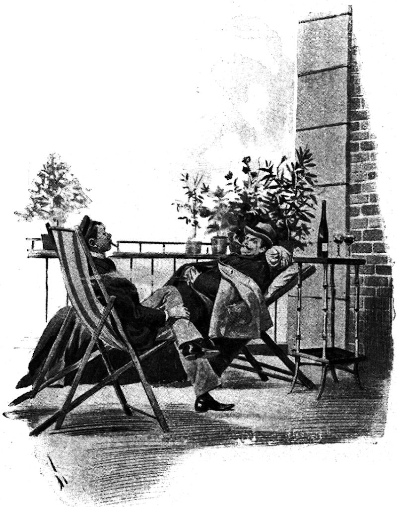 Aber er blieb noch am Fenster, während der Doktor seinen Cylinder in eine Hutschachtel packte und eine grün-blau karierte Reisemütze hervorsuchte.