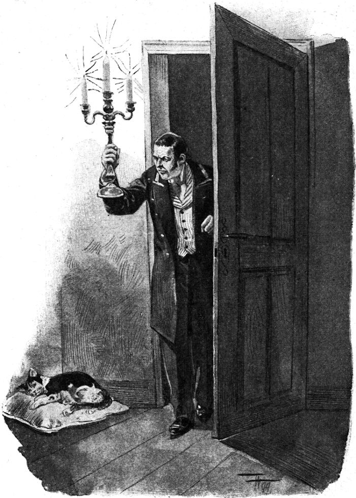 In dem offenen Kamin prasselte ein leichtes, aprilgemäßes Holzfeuer, in dem warmen, weichen Sessel saß es sich unendlich behaglich, er schloß die müde blinzelnden Augen. Dann öffnete er sie noch einmal und richtete sich halb auf in der plötzlichen Erwägung, daß er beim Schlafen den Frack zerdrücke und lieber die bequeme Sammetjoppe anziehen wolle, aber er war schon zu müde.