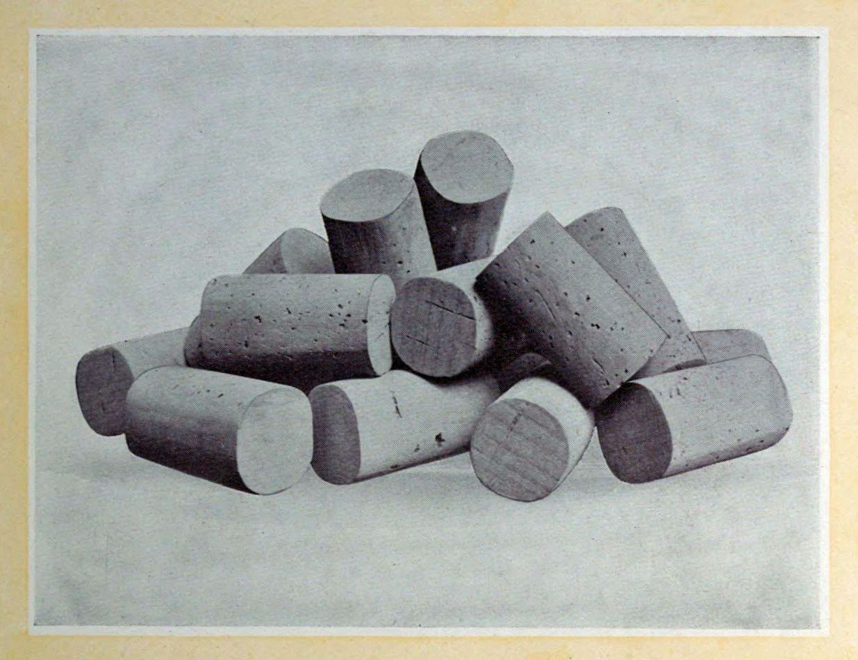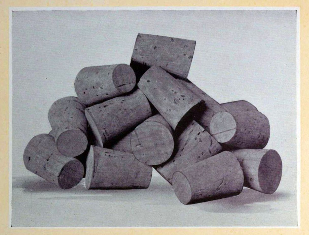 An order for a quantity of corks of a certain size and quality also involves, of necessity, the manufacture of a great many corks of other grades. The reason for this is, of course, found in the fact that the raw material, no matter how carefully sorted at the outset, will not produce a finished product of uniform quality. Thus frequently it becomes necessary to work over a given lot of corks for which there is no demand into a smaller size for which orders are pouring in.