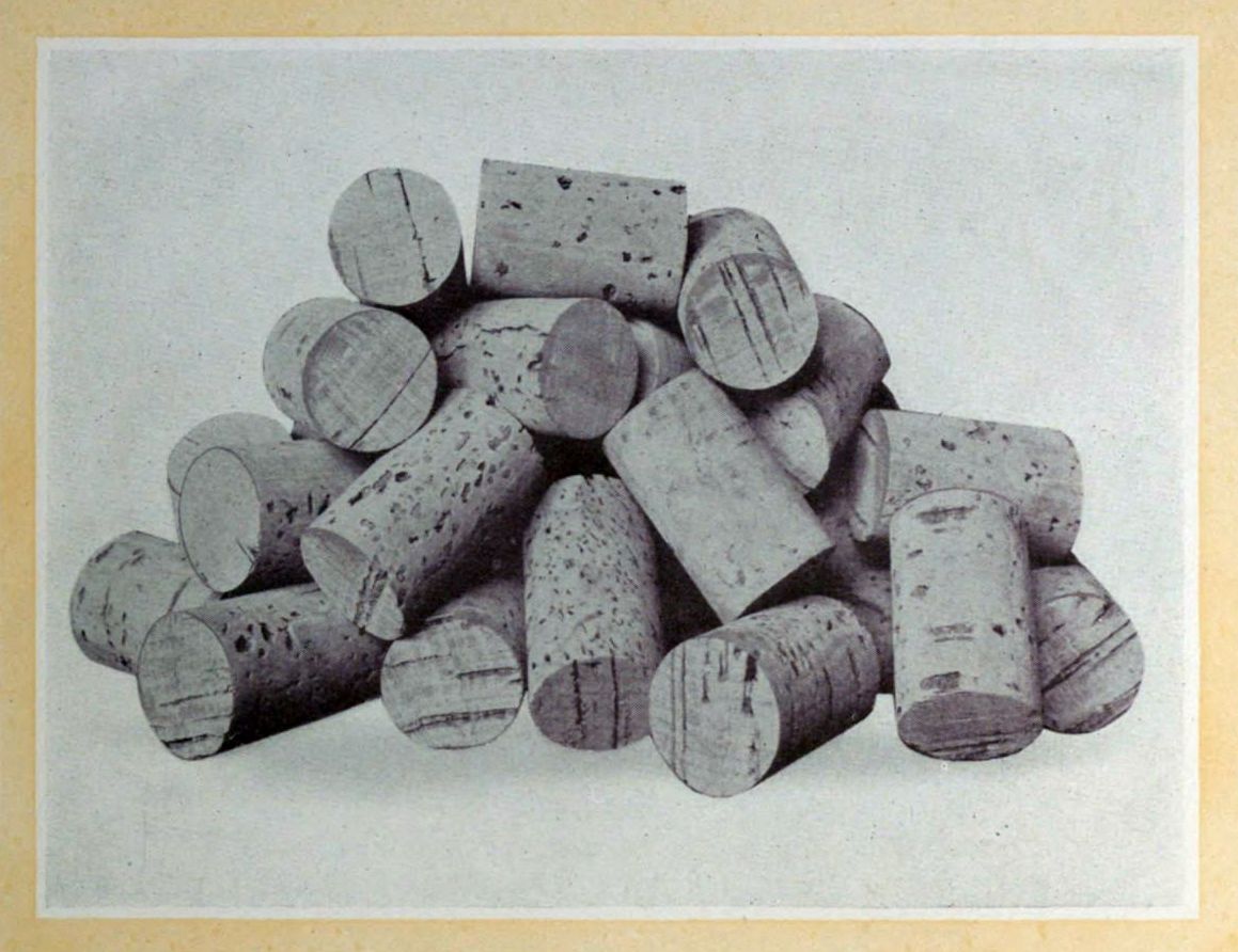 Besides, there are keg corks, hand cut corks, mustard and jar corks of large diameter, shell corks, perforated through the center, and glued corks made up of several layers, all of which must be put up in packages of suitable size, ready to be delivered to the shipping department for transportation to the consumer.