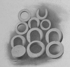 From “Suberit,” as the finest variety of this material is termed—light, close grained, and tough, without the large pores of the natural cork—table mats to be placed under hot dishes, pin cushions, fishing line floats, polishing wheels, and instrument handles are[Pg 41] manufactured; while from “Acme,” a somewhat coarser grade, are made insoles, bath mats, washers, gaskets, and entomological cork—thin sheets for mounting insects.