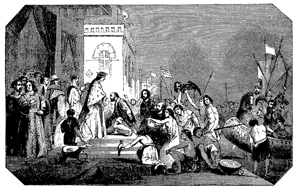 Lascary, who, from the time the rock had been placed on the deck of the vessel, had been a simple spectator of these operations, which occupied two weeks, now received orders to draw it again upon the wharf. He immediately applied himself to remedy the error, which had been committed in not distributing the weight equally, without removing the stone. He first caused the head and stern of the barge to be loaded with large stones, until they sank to a level with the centre; the rock was then raised by means of screws and beams of timber, diverging to every part of the vessel, placed under and against it, and, on the removal of the screws, the pressure being[Pg 269] equal in every part, she regained her original form. The water was next pumped out, the stones removed from the head and stern, and a ship lashed on each side of the barge, which on the 22nd of September, 1769, arrived opposite the quay where it was intended to erect the statue. The rock was raised from the spot where it was first found at the end of March preceding.