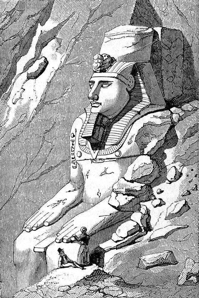 To narrate all the enterprises of Belzoni would occupy volumes. Let us allude but to one more. He uncovered the front of the great Sphynx—that gigantic monument which has been synonymous with “Mystery” from the remotest ages of history. Numerous pieces of antiquity were as unexpectedly as extraordinarily developed by this enterprise—pieces which, for many centuries, had not been exposed to human eyes. Among other things, a beautiful temple, cut out of one piece of granite, yet of considerable dimensions, was discovered between the legs of the sphynx, having within it a sculptured lion and a small sphynx. In one of the paws of the great sphynx was another temple with a sculptured[Pg 242] lion standing on an altar. In front of the great sphynx were the remains of buildings, apparently temples, and several granite slabs with inscriptions cut into them, some entire and others broken. One of these is by Claudius Cæsar, recording his visits to the pyramids, and another by Antoninus Pius, both of which, with the little lions, are now in the British Museum.
