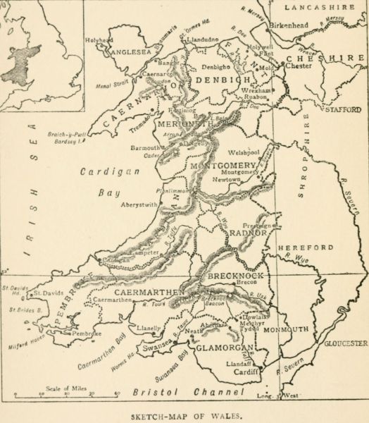 We saw in the last chapter that Cardigan is a lonely county, cut off from its neighbours by mountains and hills all the way from Plynlimmon to Lampeter, and by steep slopes, forming the Valley of the Teify, on the Carmarthen side. Hence its position has made it in bygone days “the last refuge of the beaten and the first landing-place of returning exiles.”
