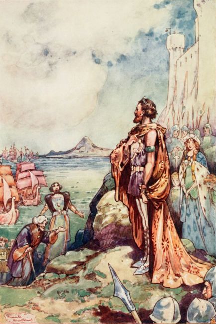 And so it came about; for Taliesin, the magic child, not only saved Elphin’s life and liberty when he was in great danger and made him a rich and fortunate man; he also brought high fame to the House of Gwyddno by his very name and connection with it. For Taliesin, the rest of whose wonderful story must be read elsewhere, became the minstrel, and bard, and prophet of the Britain of old days; and this was one of his prophecies made concerning the people of his land: