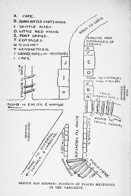 “Les Prussiens, les Prussiens!” These words are uttered in hoarse whispers under my window while I dress. They send a nervous tremor down my spine. At breakfast I am informed that the Germans are only a day’s march distant. They have already crossed the frontier and are advancing on us. Bombarded Liège is safer than Manhay, situated on one of the high roads from the frontier. The blindest Teuton could not miss this short, straight line of white-washed houses.