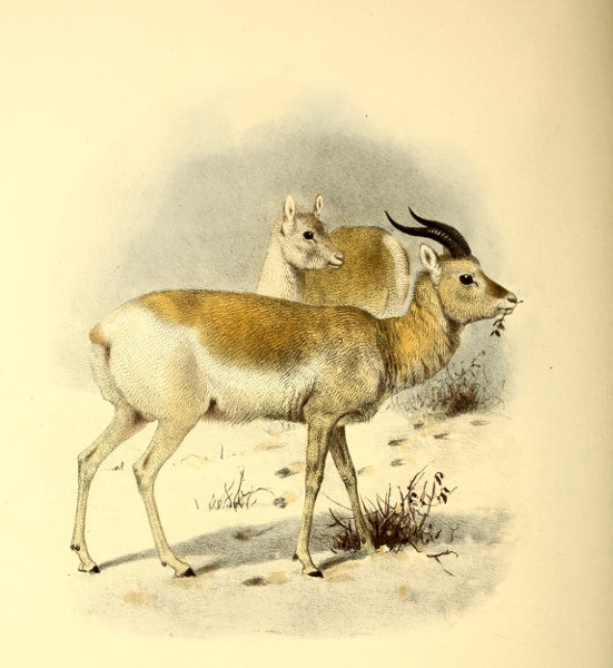 [3] This species may be taken as the type of Gazella, as being the only one which is common to Lichtenstein’s original genus and to Blainville’s “Gazella” of 1816. The latter author is ordinarily quoted as the original founder of the name, and his list includes the best known species—G. dorcas. But Lichtenstein’s genus, two years earlier in date, does not contain G. dorcas at all, and the only way in which the name Gazella can be properly retained for this group is by regarding G. subgutturosa as its type.