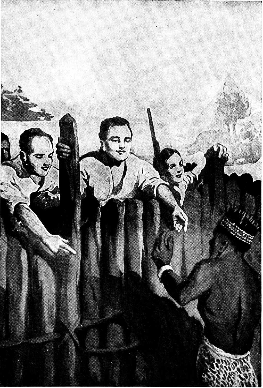 | The Professor within Osaga’s territory. Advises the {7}people they will not be injured. Telling them Uraso was not injured by the white people. Following the Osagas to prevent them from attacking the wagon. Blakely and John notice the peculiar manner in which the tribes march. Characteristics of people. Unaware of the presence of the wagon. Discovered by the last tribe. The fort ready for the fight. Kurabus circling the fort. Muro’s first shot with the gun. A good marksman. Defeat of attacking party. Rain. Inability to use the bows. An uncomfortable night. A call in the darkness. An object held up outside the fort. Sutoto arrives with the message from the Professor. Helping him into the fort. A royal welcome. Tells the story of the Professor. Recognizes Muro. Blakely recalls Sutoto. The Professor hurrying forward. A lurking native. Cries of Osaga. Recognizes Uraso. Captured and escaped. Uraso’s surprise at the Professor in command of the Berees. Uraso explains. Tells the people about the Professor. | ||