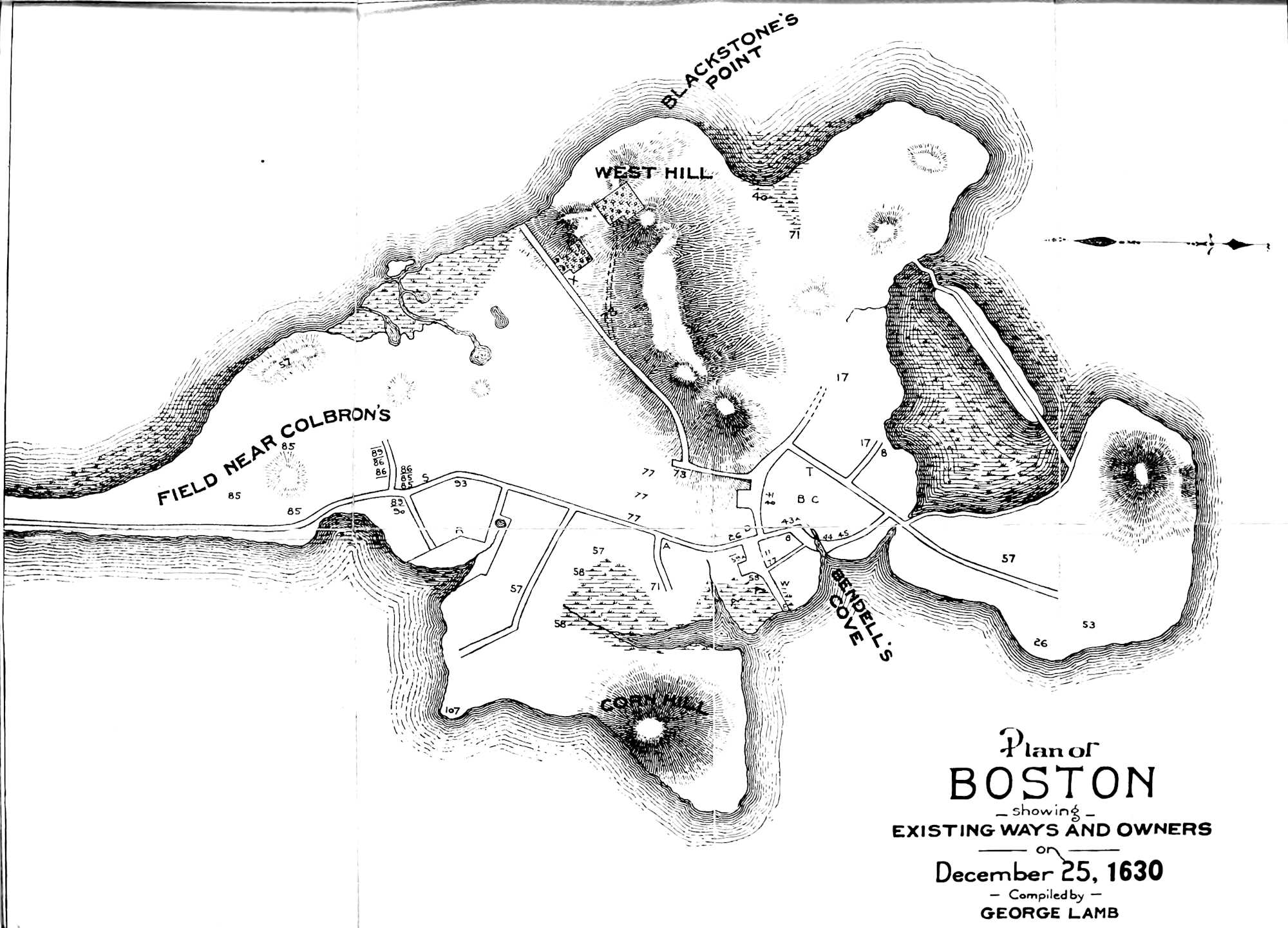 The plan dated December 25, 1645, while in the main correct, does not show all the transfers made during that year, as will be seen by consulting Suffolk Deeds, Lib. 1, as noted in the introduction to the Book of Possessions (Volume 2 of the Boston Records), the first 111 pages of which were written by William Aspinwall prior to the 10th month, 1645.
