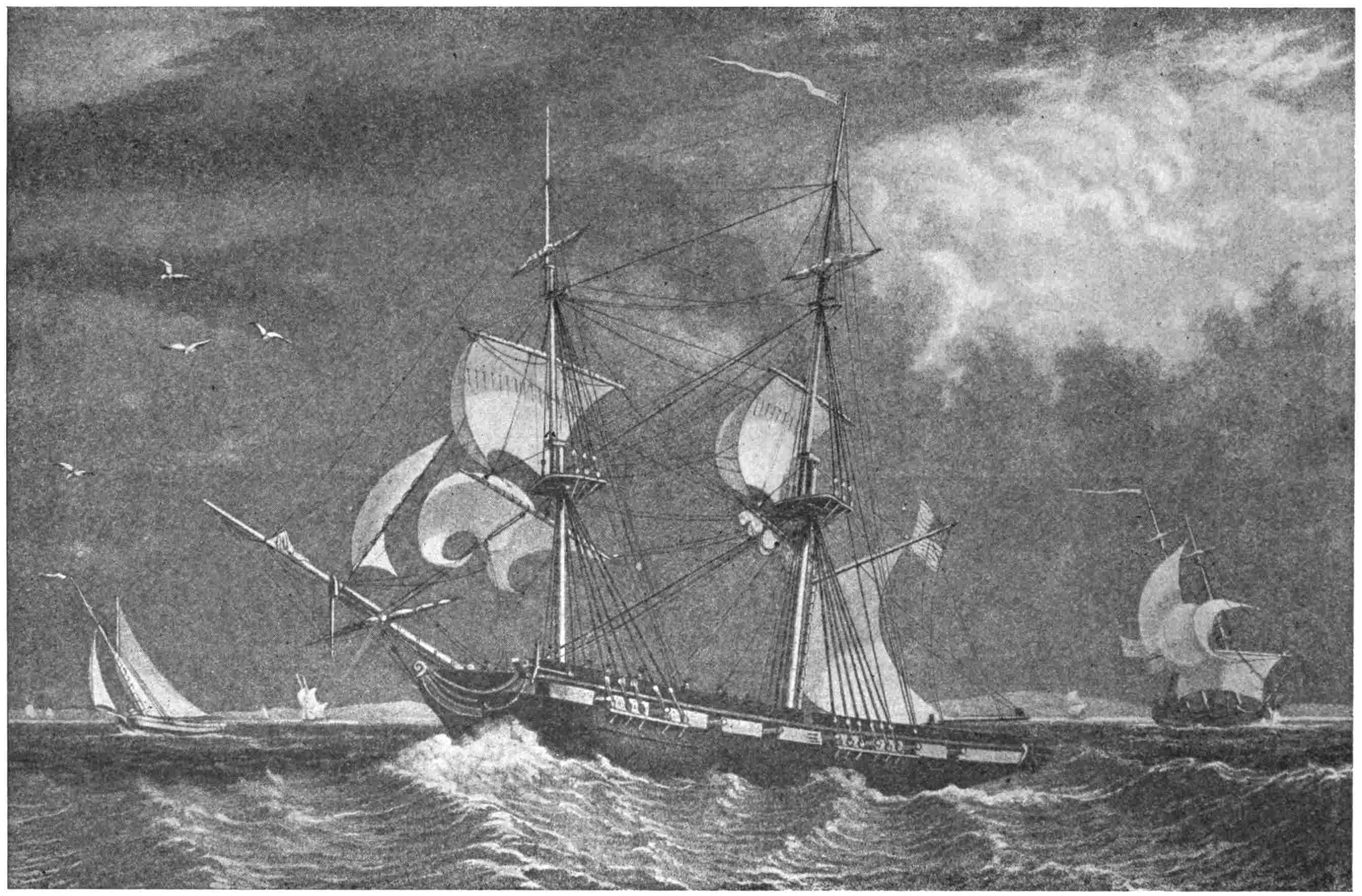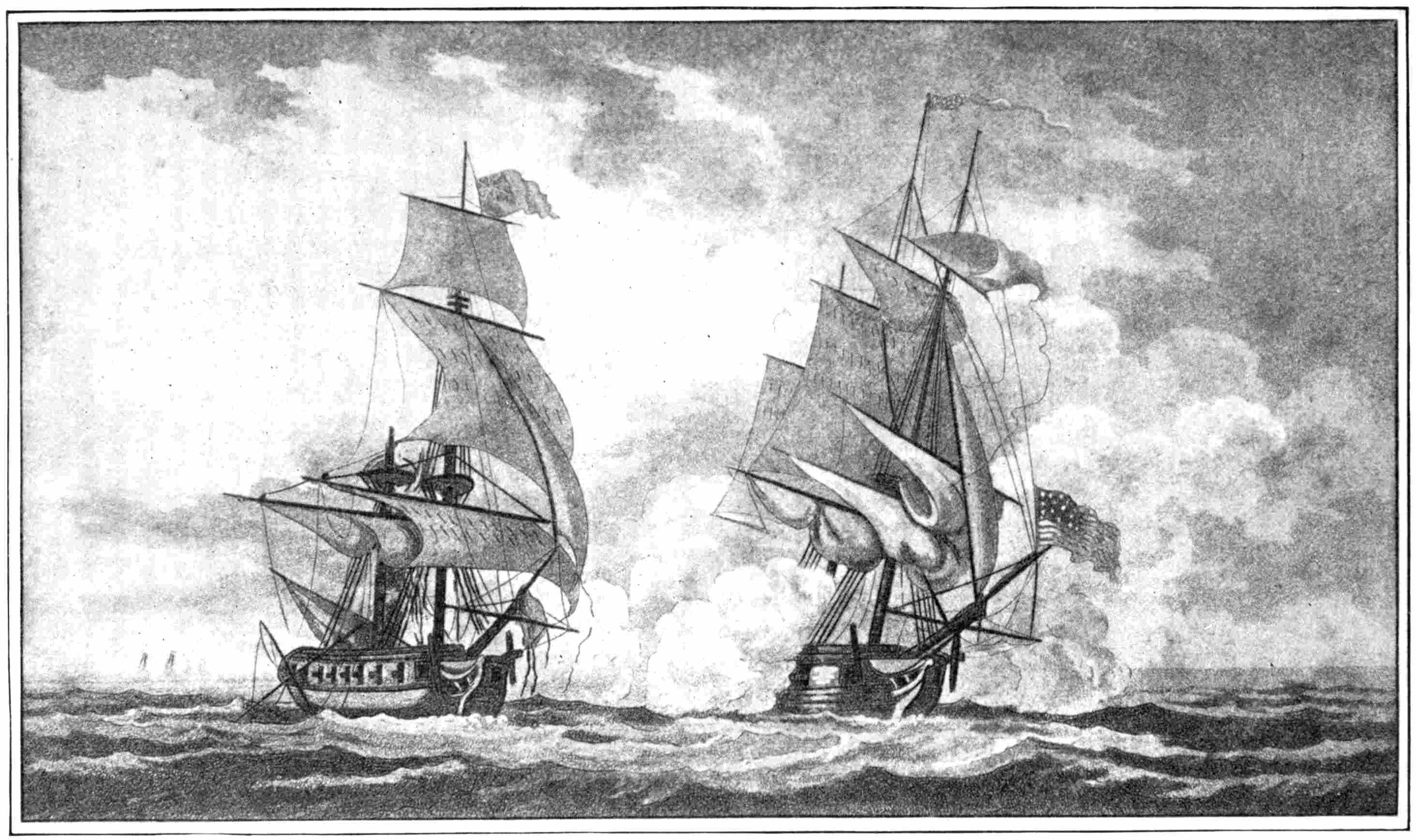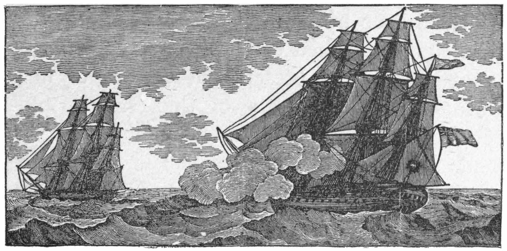 | A Typical New England Yankee Crew—Youthful Haymakers and Wood-choppers—Sea-sick for a Week—From Flails to Cutlasses, from Pitchforks to Boarding-pikes, from a Night-watch at a Deer-lick to a Night Battle with the British—After British Commerce in British In-shore Waters—Met by the British Sloop-of-war Reindeer—Magnificent Pluck of the British Captain with a Crew that was “The Pride of Plymouth”—Shot to Pieces in Eighteen Minutes—A Liner that could not Catch her—Wonderful Night Battle with the Avon—Shooting Men from the Enemy’s Tops as Raccoons are Shot from Tree-tops—The Enemy’s Water-line Located by Drifting Foam—Not Captured but Destroyed—The Mystery. | |