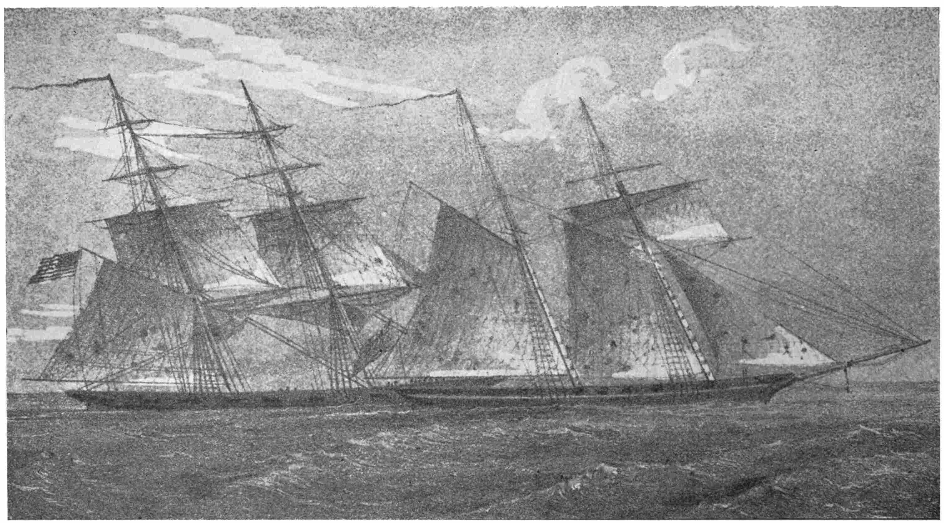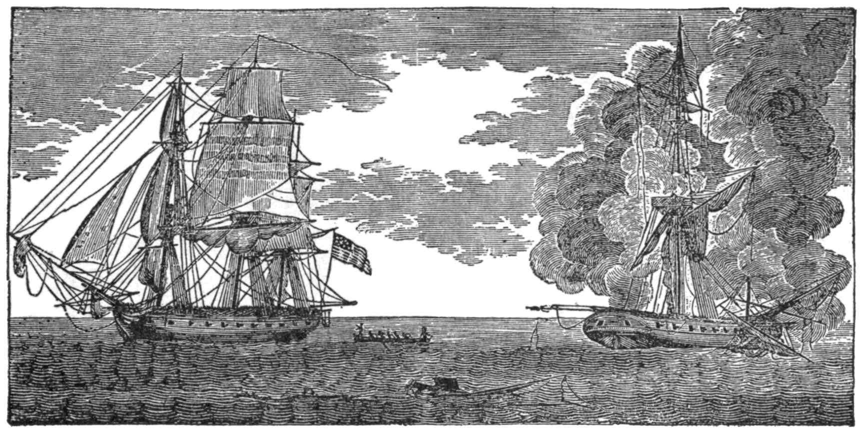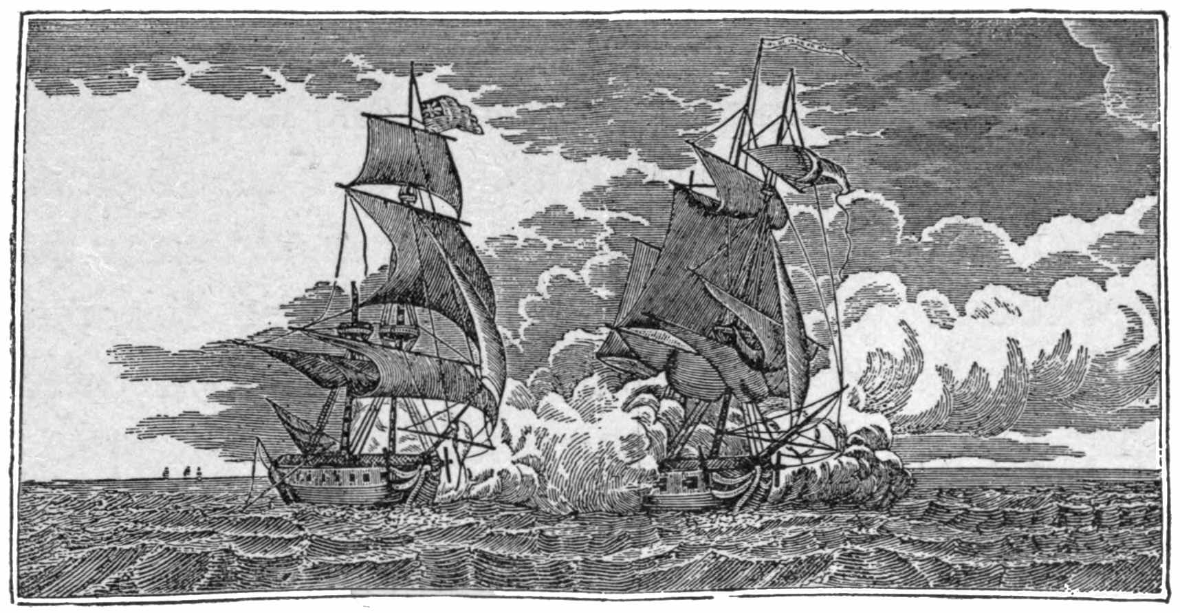 | A Typical New England Yankee Crew—Youthful Haymakers and Wood-choppers—Sea-sick for a Week—From Flails to Cutlasses, from Pitchforks to Boarding-pikes, from a Night-watch at a Deer-lick to a Night Battle with the British—After British Commerce in British In-shore Waters—Met by the British Sloop-of-war Reindeer—Magnificent Pluck of the British Captain with a Crew that was “The Pride of Plymouth”—Shot to Pieces in Eighteen Minutes—A Liner that could not Catch her—Wonderful Night Battle with the Avon—Shooting Men from the Enemy’s Tops as Raccoons are Shot from Tree-tops—The Enemy’s Water-line Located by Drifting Foam—Not Captured but Destroyed—The Mystery. | |