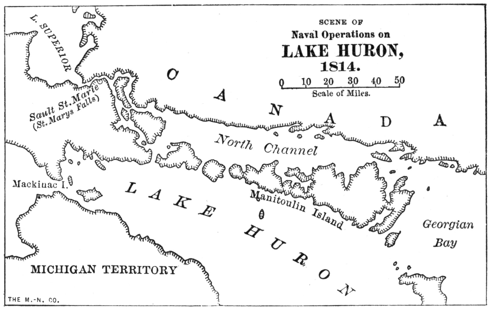 | An Expedition into Lake Huron—The British had the Best of it in the End—Gallant Action of a British Commander at the Head of the Niagara River—Cautious Captain Chauncey as a Knight of the Whip-saw, Adze, and Maul—His Equally Prudent Opponent—British Torpedoes that Failed—When a Thousand Men Supported by Seven Ships Armed with One Hundred and Twenty-one Cannon “with Great Gallantry” Routed Three Hundred Yankees at Oswego—Supplies the British did not Get—A Naval Flotilla Caught in Big Sandy Creek—Chauncey Afloat on the Lake—Gallant Young American Officers—Line-of-battle Ships that were Never Launched. | |