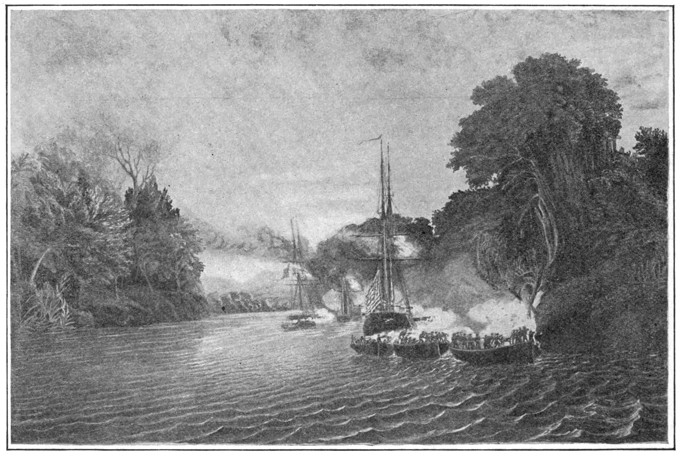| The British Grab at the Valley of the Mississippi—Stopped at Lake Borgne by the Yankee Gun-boats under Lieutenant Thomas Ap Catesby Jones—The British Came Five to One in Numbers and Almost Four to One in Weight of Metal—Defending the Seahorse with Fourteen Men against One Hundred and Seventy-five—The Full British Force Driven upon Two Gun-boats—A Most Heroic Defence that Lasted, in Spite of Overwhelming Odds, more than One Hour—Indomitable Sailing-master George Ulrich—A Fight, the Memory of which still Helps to Preserve the Peace—Work of the Caroline and the Louisiana. | |