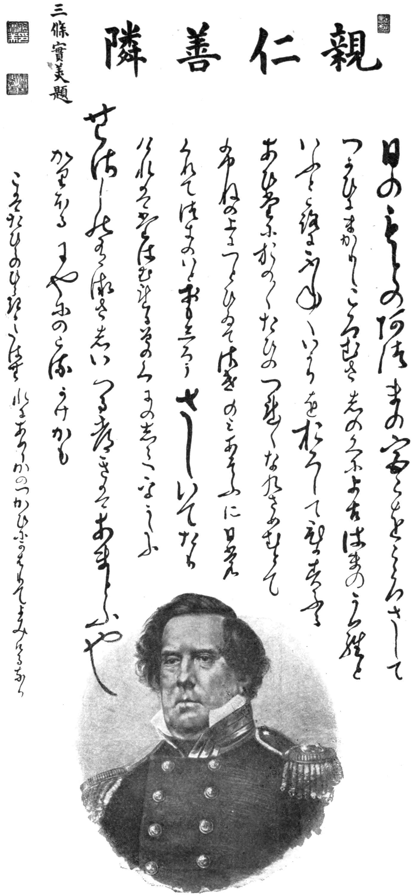 A Japanese Portrait of M. C. Perry, with a poem dedicated to him.