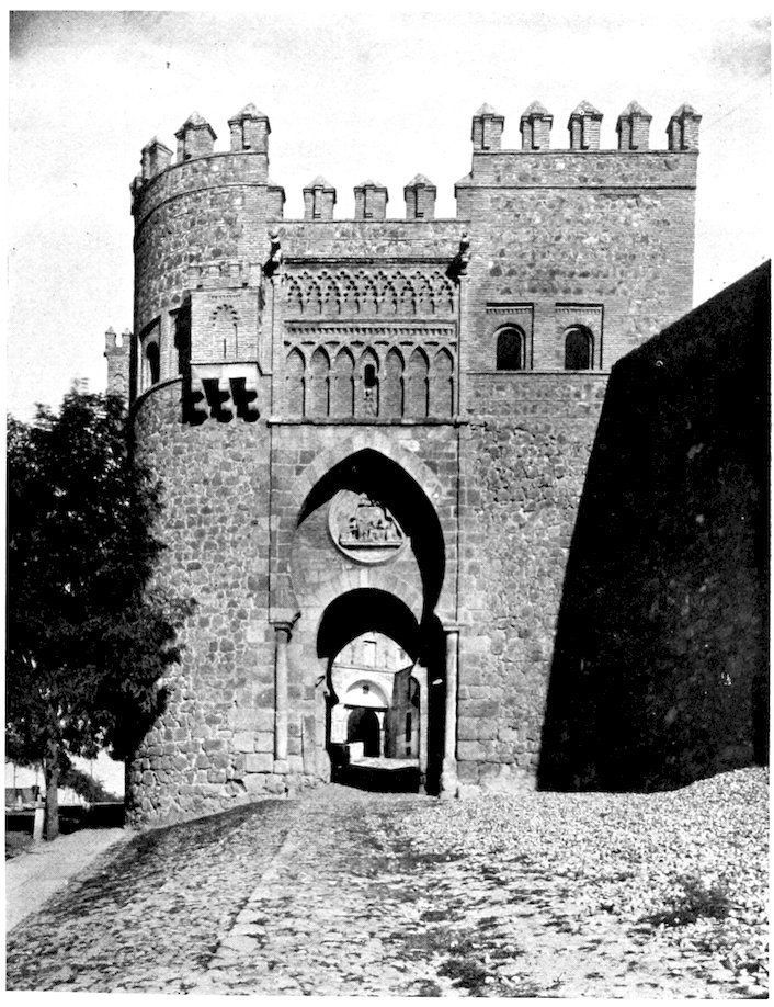In architecture at this time the evidence of foreign influence is also strong. On the one hand are Gothic Churches like San Juan de Los Reyes at Toledo or amongst secular buildings, the massive castle of Medina del Campo; on the other, in contrast to these northern designs, Renaissance works with their classic-Italian stamp, such as the Hospital of Santa Cruz at Toledo or the College of the same name at Valladolid. Yet a third element is the Moresque, founded on Mahometan models, such as the horseshoe arch of the Puerta del Perdón of the old Mosque at Seville overlaid with the emblems of Christian worship. The 420characteristics of North, South, and East, are distinct; yet moulded, as during the previous centuries, by the race that borrowed them to express ideals peculiarly its own.