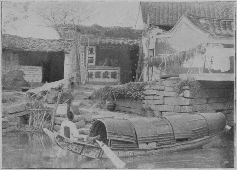 On the Min or Fu River, above the point where it runs into the Upper Yangtze. The black-and-white architecture of the villages reminds one constantly of Switzerland and the Tyrol. As to the village, it is by no means lacking in organisation. Every village consists of a group or groups of families with their head men, and over the head men are the district magistrates. The family is the centre of everything. The members are bound together by the strongest ties, and the family is responsible for the individual. The people have quite a genius for self-government, and every village is self-governing, having its privileges, which no one dare interfere with.