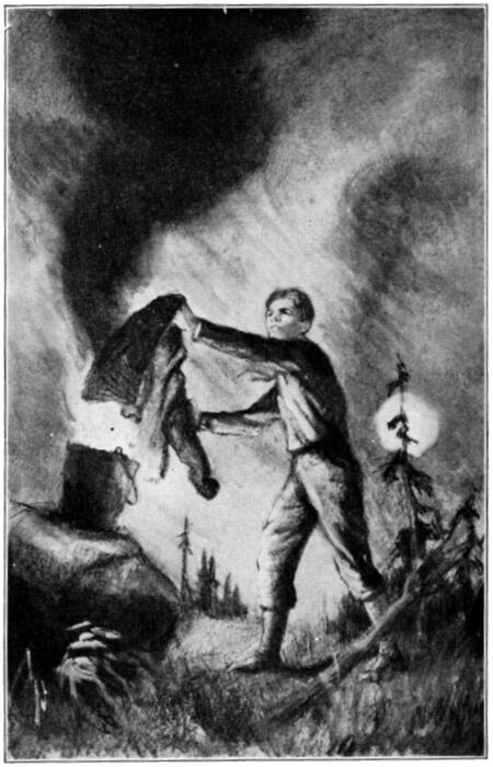 It was a terrible climb, especially with one arm embarrassed by the pail; in places he had to lift himself from one rock or projecting tree to another, like a monkey. He might have made an easier ascent to a lower eminence, but every inch of altitude he could gain was needed now. From the hilltop he saw, to his comparative relief, that the flames had not spread over a very large area. It might be that the country beyond the narrow valley was not in great danger. The fire, so it seemed to Tom, had its beginning in the widening mouth of the big gulch and was being carried in by the rising wind.